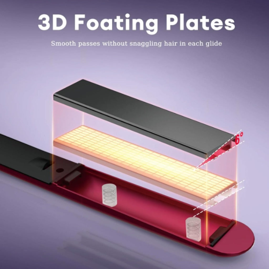 The EMBRACESUN 1-inch anti-static flat iron is a professional hair styling tool designed for straightening, flipping, and curling various hair types. It features floating ceramic plates coated with tourmaline crystals that emit negative ions to reduce frizz and static while creating shiny, silky results. The straightener includes digital temperature controls with multiple heat settings ranging up to 400°F, making it suitable for all hair types including coarse, thick, and frizzy hair. Its compact design measures 12 x 1.2 x 1.2 inches and weighs 8.82 ounces, making it travel-ready with a tangle-free swivel cord. The flat iron operates on universal voltage (110-240V) for international use, featuring anti-static technology and ceramic heating plates that provide even heat distribution for consistent styling results.