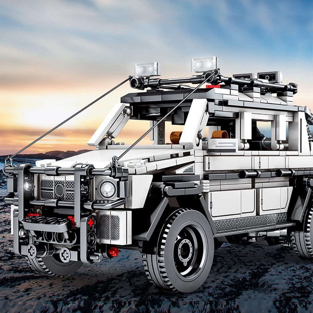 This 1:16 scale 6x6 off-road pickup truck building kit consists of 858 pieces and measures approximately 11.7 inches (29.5 cm) long, 4.2 inches (10.5 cm) wide, and 5 inches (12.5 cm) high when fully assembled. The model features a realistic vehicle appearance with detailed interior, functional doors that open and close, six off-road tires, and a luggage rack. The building blocks are compatible with major brand building systems. Designed for ages 8 and up, this collectible truck model promotes hand-eye coordination, problem-solving skills, and creative thinking. The product features a grey and white color scheme and comes in luxury box packaging with detailed assembly instructions. Suitable for display or play, this building set makes an ideal gift for off-road vehicle enthusiasts and collectors.