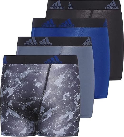 adidas Boys Microfiber Boxer Brief (4 Pack) Athletic Underwear - Galaxy Camo Black, Team Royal, Gray, Size Small