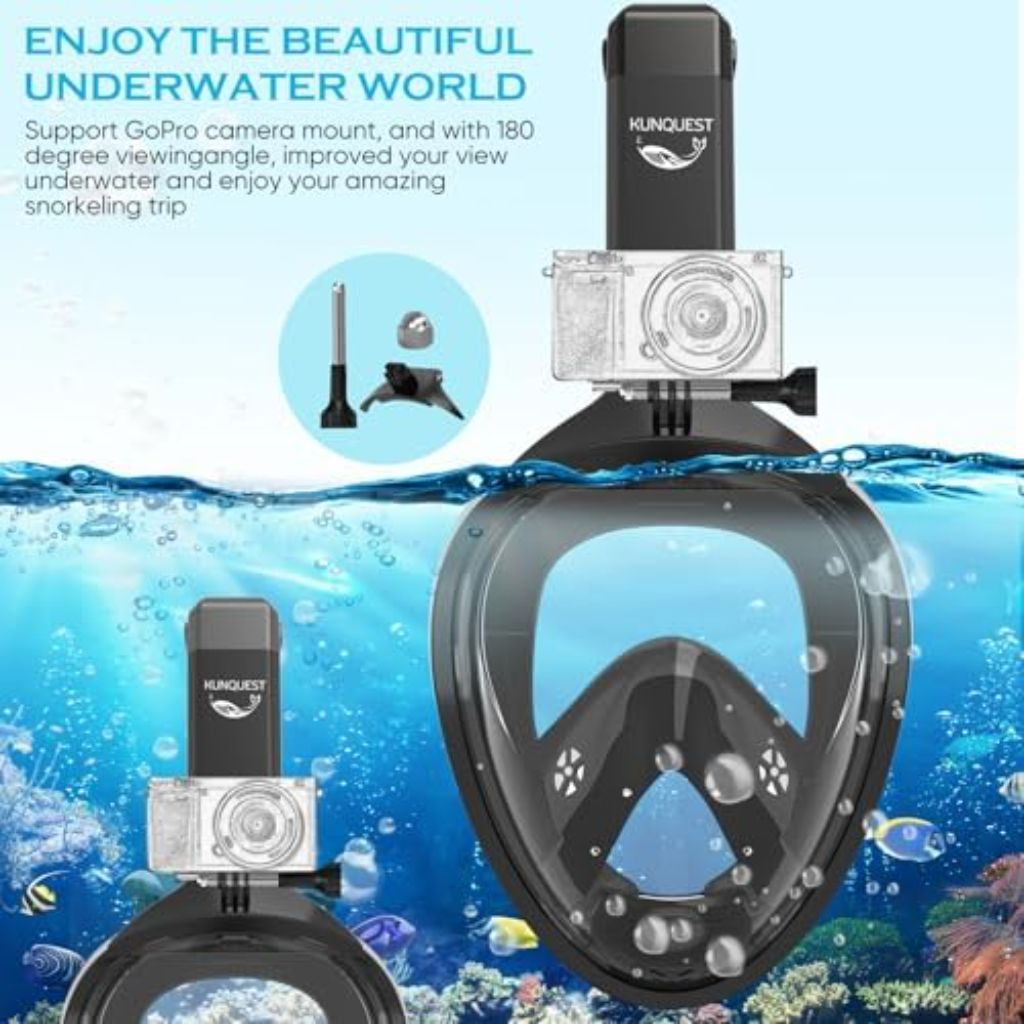 Adult Full Face Snorkel Mask with 180° Anti-Fog HD View and Detachable Camera Mount - Black, L/XL