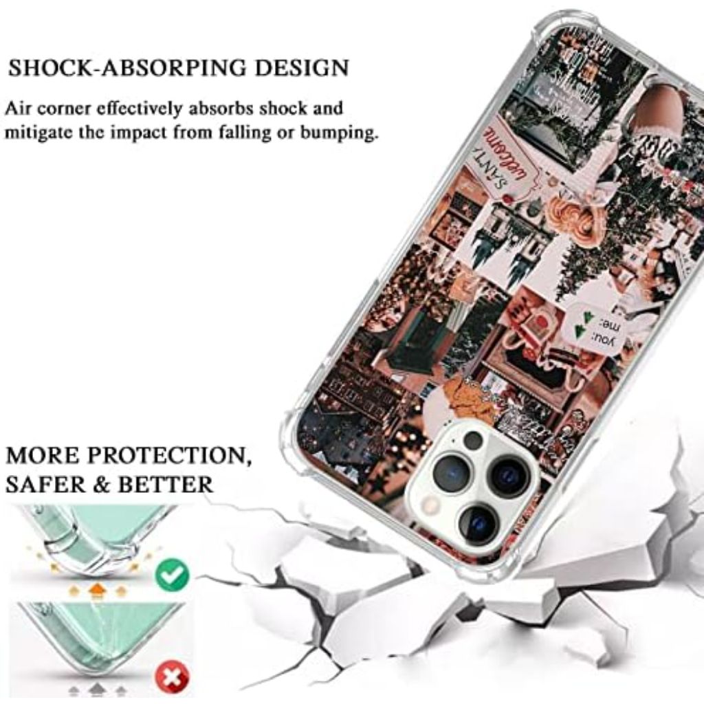 Aesthetic Christmas Case Compatible with iPhone 15 Pro, Trendy Winter Collage Case for iPhone 15 Pro, Unique Trendy Design TPU Bumper Protective Cover Case
