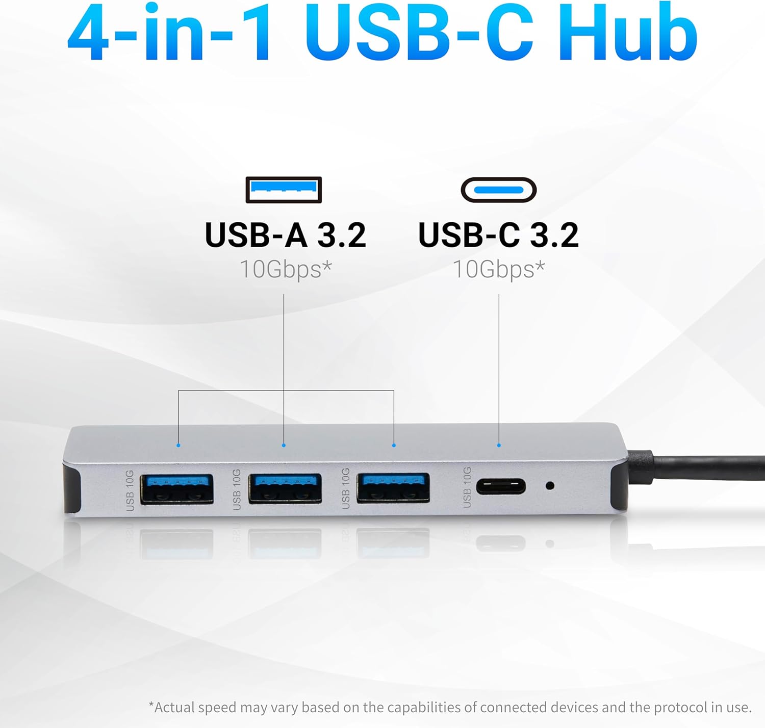 The Amazon Basics USB 3.2/3.1 Gen 2 Hub Dock is a compact expansion device designed to add connectivity to laptops and computers with USB-C ports. It features a 10Gbps data transfer speed, supporting the USB 3.2 Gen 2 and USB 3.1 Gen 2 standards. The hub provides one downstream USB-C port and three downstream USB-A ports, allowing you to connect multiple peripherals simultaneously, such as external hard drives, flash drives, keyboards, and mice. It is backward compatible with previous USB standards. The dock is constructed from durable materials in a silver and black color scheme. It is plug-and-play compatible with Windows and Mac operating systems and does not require external drivers or power adapters for most devices. The compact design makes it portable for use at home, in the office, or while traveling.