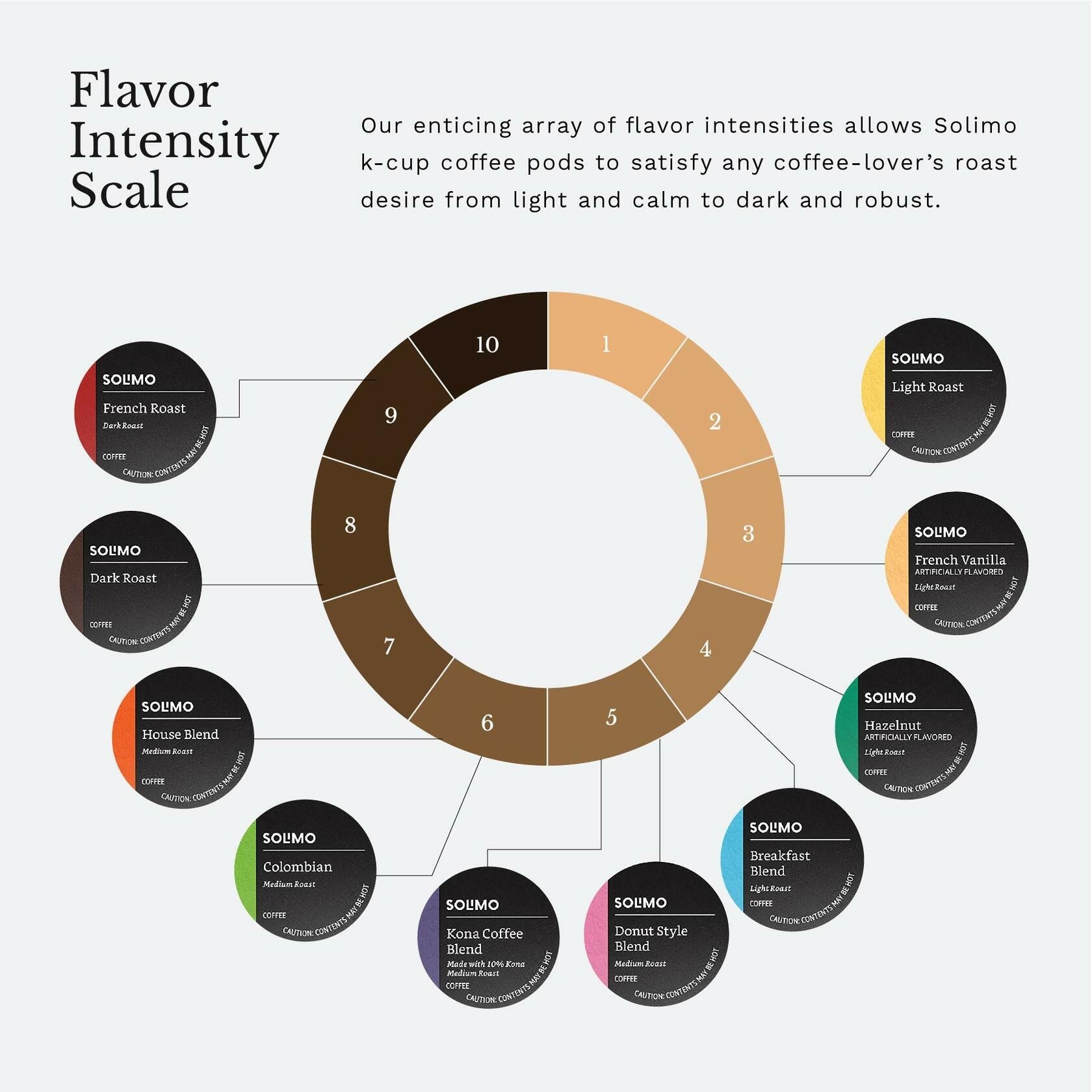 Solimo Dark Roast Keurig K-Cup Coffee Pods are single-serve coffee capsules designed for use with Keurig K-Cup brewing systems. This 100-count package contains dark roast coffee pods made from 100% Arabica beans. The dark roast profile delivers a bold, robust flavor with rich, intense notes and a smooth finish. These coffee pods are compatible with all Keurig single-serve coffee makers. Each pod is individually sealed to preserve freshness and flavor integrity. The dark roast coffee offers a full-bodied experience with low acidity, making it suitable for coffee enthusiasts who prefer a stronger, more intense coffee flavor. The packaging is designed for convenient storage and easy dispensing.