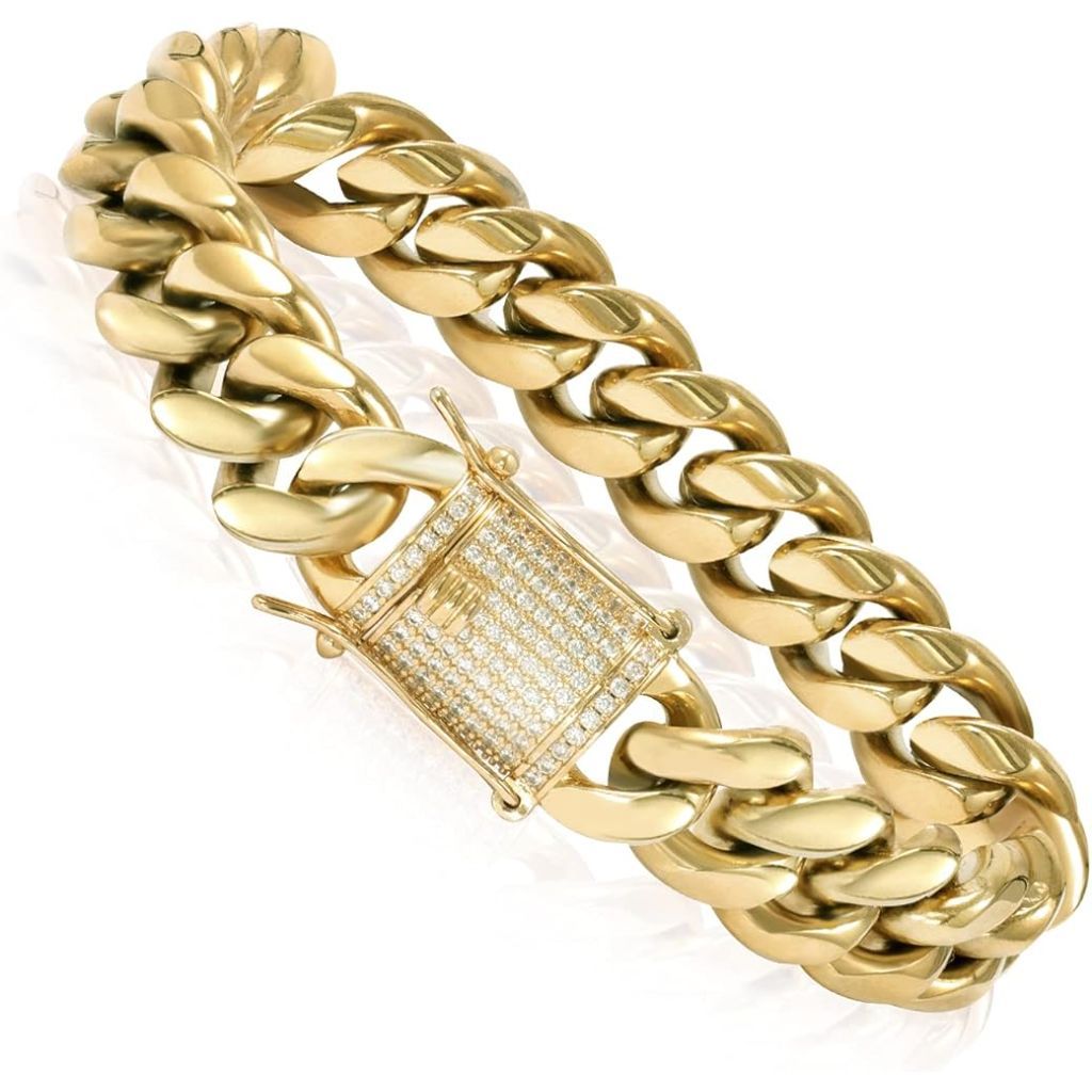 Amazon Essentials Thick Cuban Chain Bracelet with Simulated Diamond Clasp