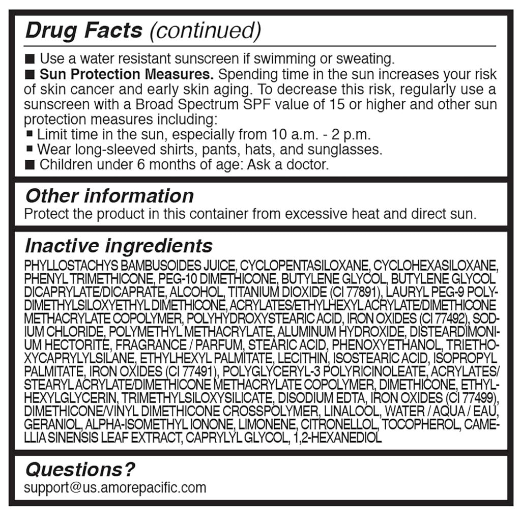 What It Does: (Protection) Color Control Cushion Compact Broad Spectrum SPF 50+ protects against both harmful UVA and UVB rays, shielding the skin from sun damage. (Anti-inflammatory) Dynamic Fluid Capture System Technology transforms liquid into a refined emulsion applied with a non-absorbing puff applicator that cools and soothes the skin. (Coverage) The Exclusive Long-Lasting Complex proprietary skin technology fills micro lines and ensures color builds into fine even layers, providing long-lasting flawless coverage. (Brightening) Green Tea Treatment Complex brightens and prevents skin irritation while providing superior antioxidant protection. (Hydration) Hydrating Bamboo Sap Formula replaces traditional water in oil base for deep moisturizing to strengthen against environmental aggressors.