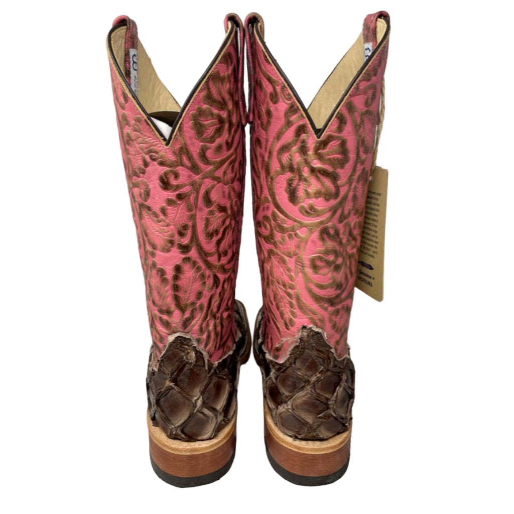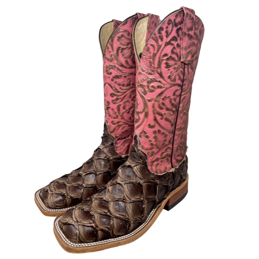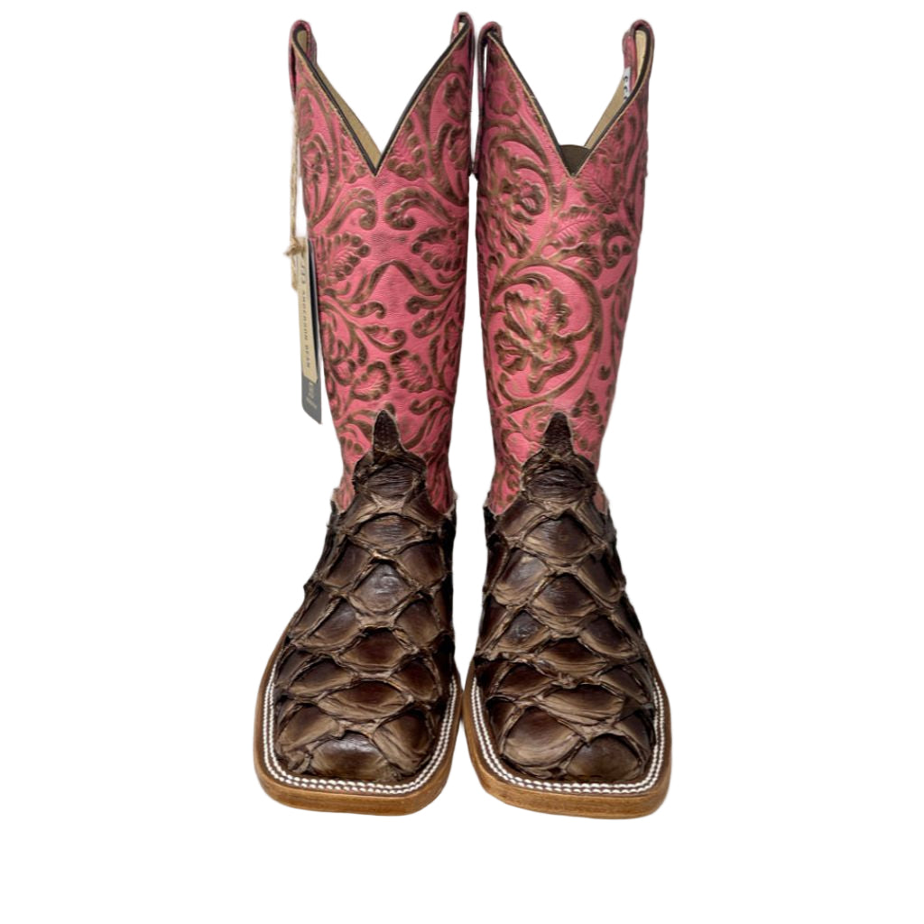 Anderson Bean Ladies 4236M Bronze Big Bass Pepto Antique Tooled Square Toe Boot, Size 8
