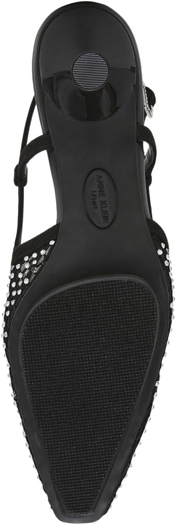 The Anne Klein Thia Sling-Back Kitten Heels deliver refined sophistication with practical wearability. These black pumps feature shimmering multi-tonal accents and delicate rhinestone detailing at the toe for understated glamour. The mesh and synthetic upper construction balances breathability with structural support, while the cushioned insole and soft lining ensure comfort throughout extended wear. An adjustable slingback buckle provides a secure, customizable fit, and the classic snip-toe silhouette pairs seamlessly with professional and evening wardrobes alike. The 2-inch heel height and durable synthetic rubber outsole make these versatile pumps ideal for the office, special events, or everyday elegance. Imported. Size 6, width M.