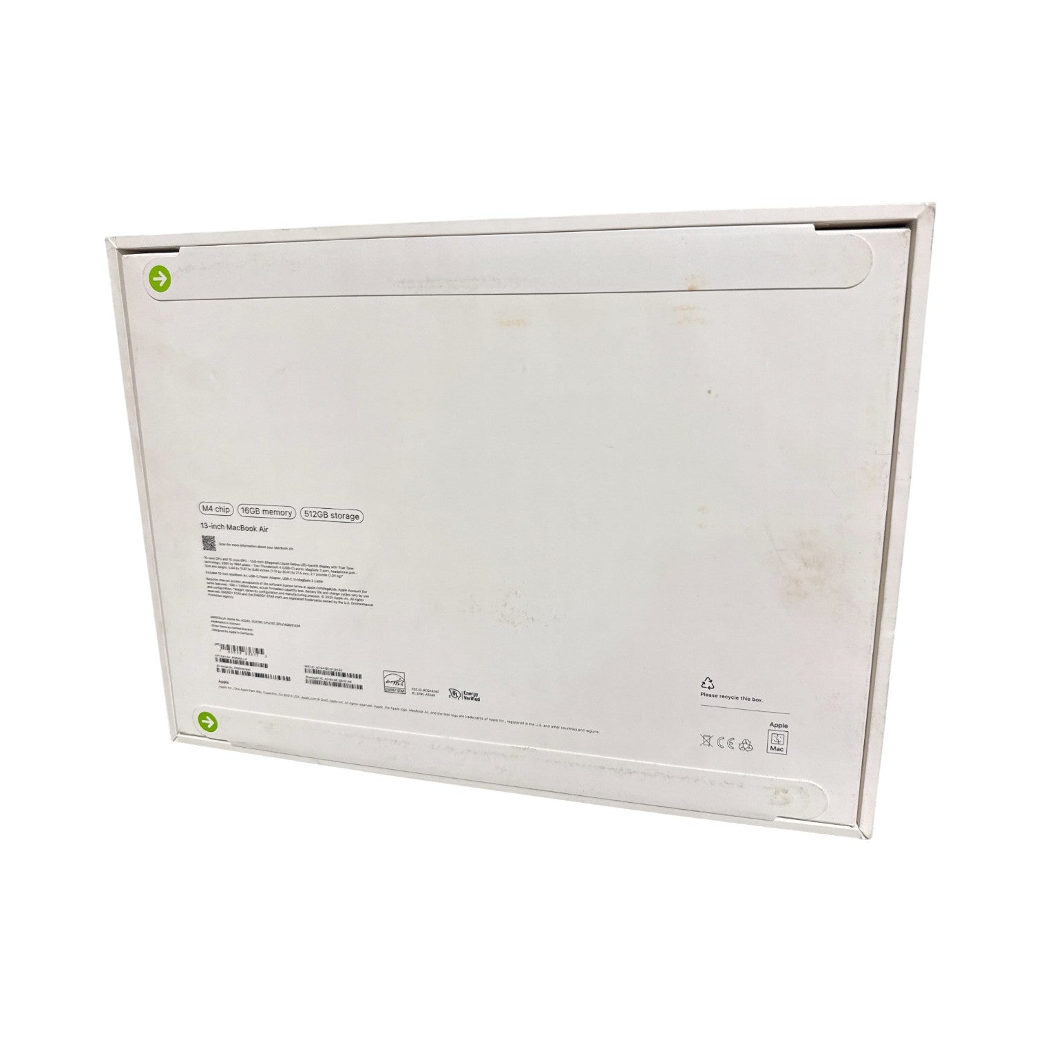 Box has small black smudge brand new!! The 13-inch MacBook Air with the M4 chip lets you fly through work and play. With Apple Intelligence, a brilliant Liquid Retina display, up to 18 hours of battery life, and a strikingly thin and light design, it’s built to last and can take on just about anything, anywhere.