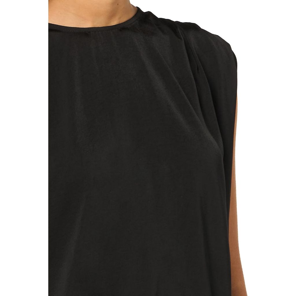 BCBG New York Women's Sleeveless Drawstring Crew Neck Top, Black Onyx - Size XXS