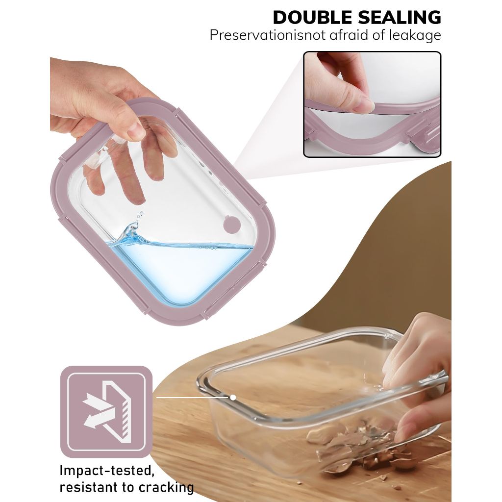 Borohouse Glass Food Storage Containers with Tempered Lids - 5ct (Pink)