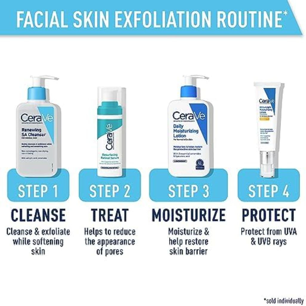 The CeraVe Renewing Salicylic Acid Cleanser is a foaming facial cleanser designed for exfoliation and deep cleansing. It contains salicylic acid (BHA) to gently exfoliate the skin by removing dead skin cells, helping to smooth texture and enhance radiance. The formula is enriched with hyaluronic acid to provide hydration, niacinamide to help calm the skin, and three essential ceramides (1, 3, 6-II) to help restore and maintain the skin's natural protective barrier. This fragrance-free, non-comedogenic cleanser is suitable for various skin types, including dry, sensitive, oily, and acne-prone skin. It is developed with dermatologists and is also noted for providing relief for skin conditions like psoriasis. The product comes in a 16-ounce bottle.