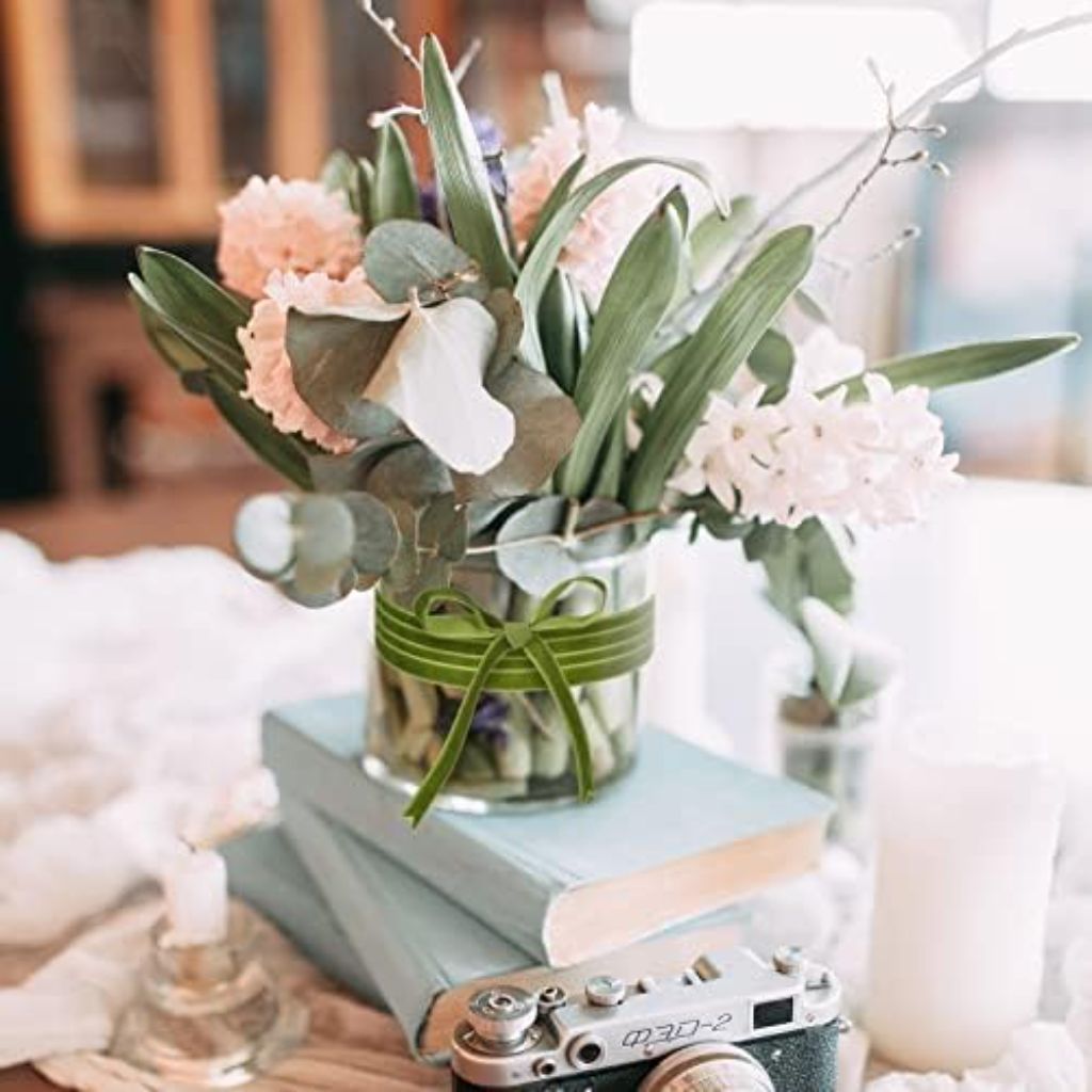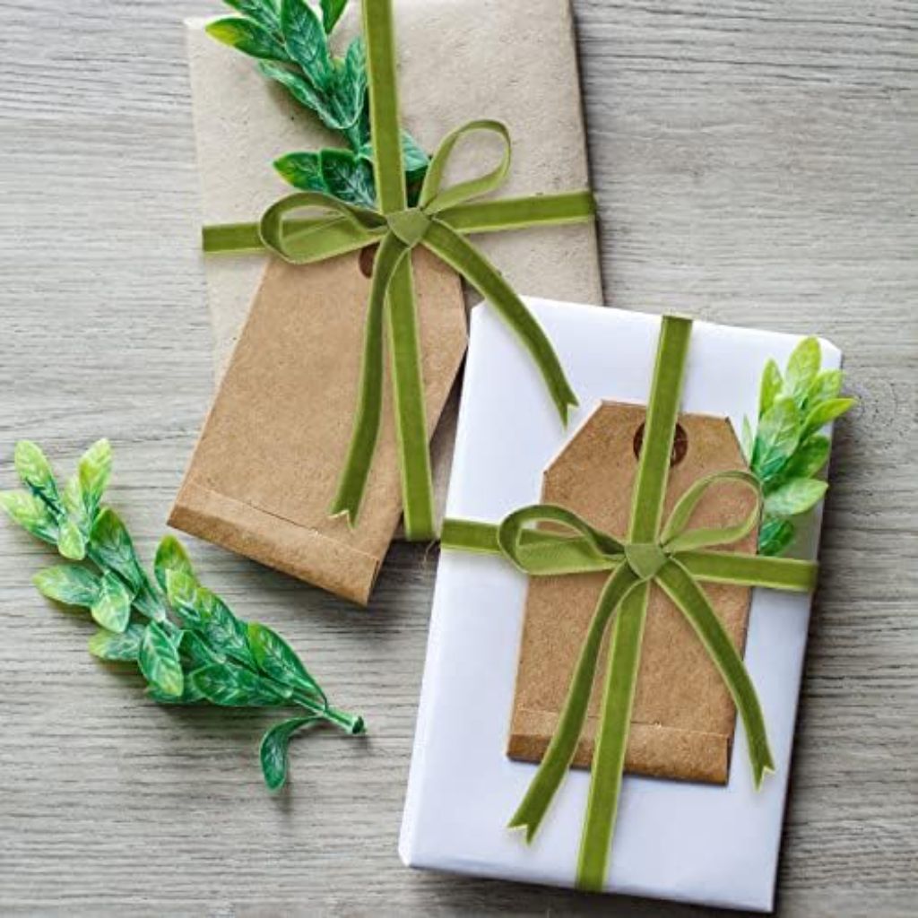 The Chuangdi Olive Green Velvet Ribbon is a single-faced decorative ribbon made from soft, comfortable nylon material. It features a luxurious shine and is designed to be durable and resistant to breaking. The ribbon measures 3/8 inches in width and comes in a 60-yard length, rolled on a cardboard core to prevent wrinkles and dirt. This olive green velvet ribbon is versatile for various crafting and decorative applications, including gift wrapping, creating hair accessories like chokers and bows, floral arrangements, party decor, and home decoration. Its size makes it suitable for detailed work on Christmas trees, weaving through branches, or tying bows on ornaments. For best results when cutting, it is recommended to burn the edges to prevent fraying.