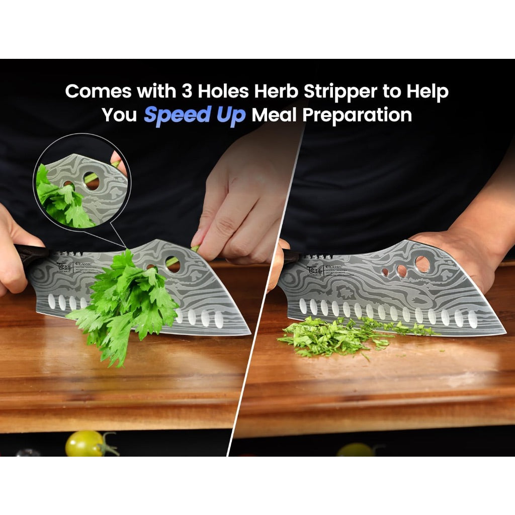 Syokami Cleaver Chef Knife with Herb Stripper, 7" Asian Kitchen Knife