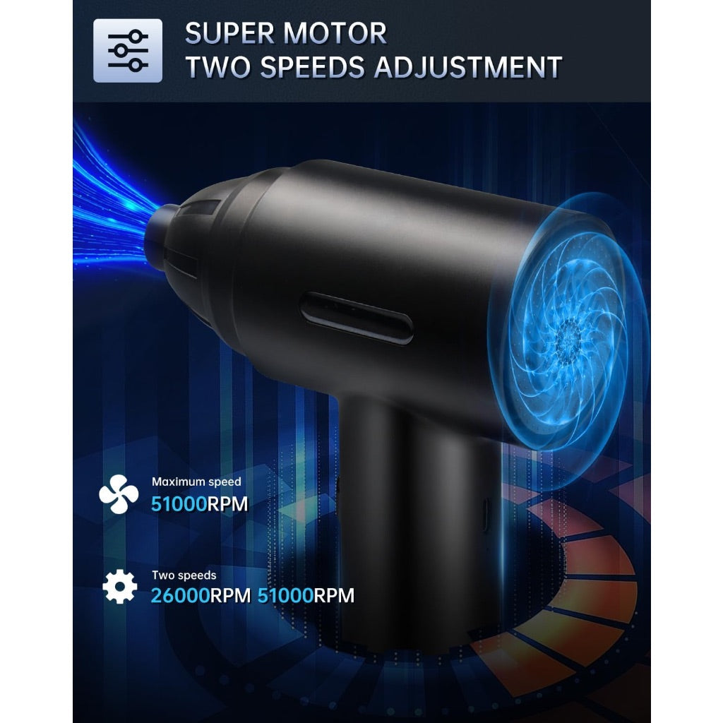 Rechargeable 3-in-1 Compressed Air Duster, 51000 RPM Motor, 9000mAh Battery