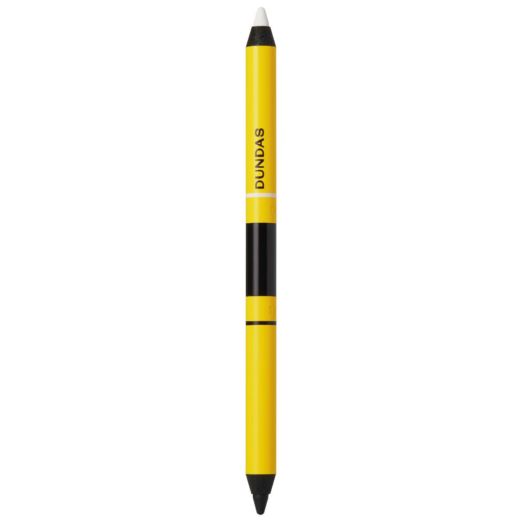 The Dundas Day to Night Eyeliner is a dual-ended makeup pencil featuring a black eyeliner on one end and a white eyeliner on the other. It is designed for creating versatile eye makeup looks, from precise definition to smoky, smudged effects. The formula is ultra-pigmented, waterproof, and long-wearing, with a creamy texture that glides smoothly for comfortable application and blendability. It is suitable for use on the waterline and is formulated to be safe for sensitive eyes and all skin types. The product is cruelty-free and vegan. The black end is ideal for defining the lash line and creating classic or dramatic looks, while the white end can be used to brighten the inner corner, highlight the brow bone, or create graphic liner styles.