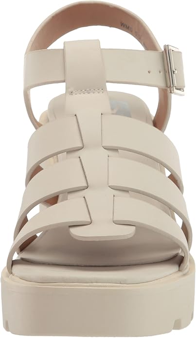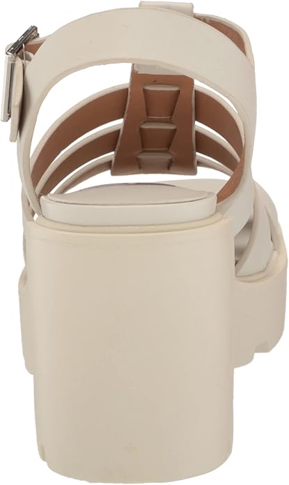 The DV by Dolce Vita Lindy Heels are a chic and sophisticated women's sandal designed to elevate your style. Featuring a gladiator-inspired strappy synthetic upper, these open-toe heels offer a modern and fashionable look. The adjustable buckle closure on the ankle strap ensures a secure and customizable fit. Constructed with a man-made lining and insole for comfort, and a durable man-made outsole. The design includes a stable block heel measuring 3 inches in height and a 1-inch platform. This imported footwear combines fashion-forward design with wearable comfort, making it suitable for various occasions from casual outings to more dressed-up events. The strappy design and neutral off-white color provide versatile styling options.