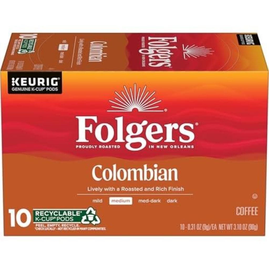 Folgers Colombian Medium Roast Keurig K-Cup Coffee Pods, 10ct *Damaged Box*