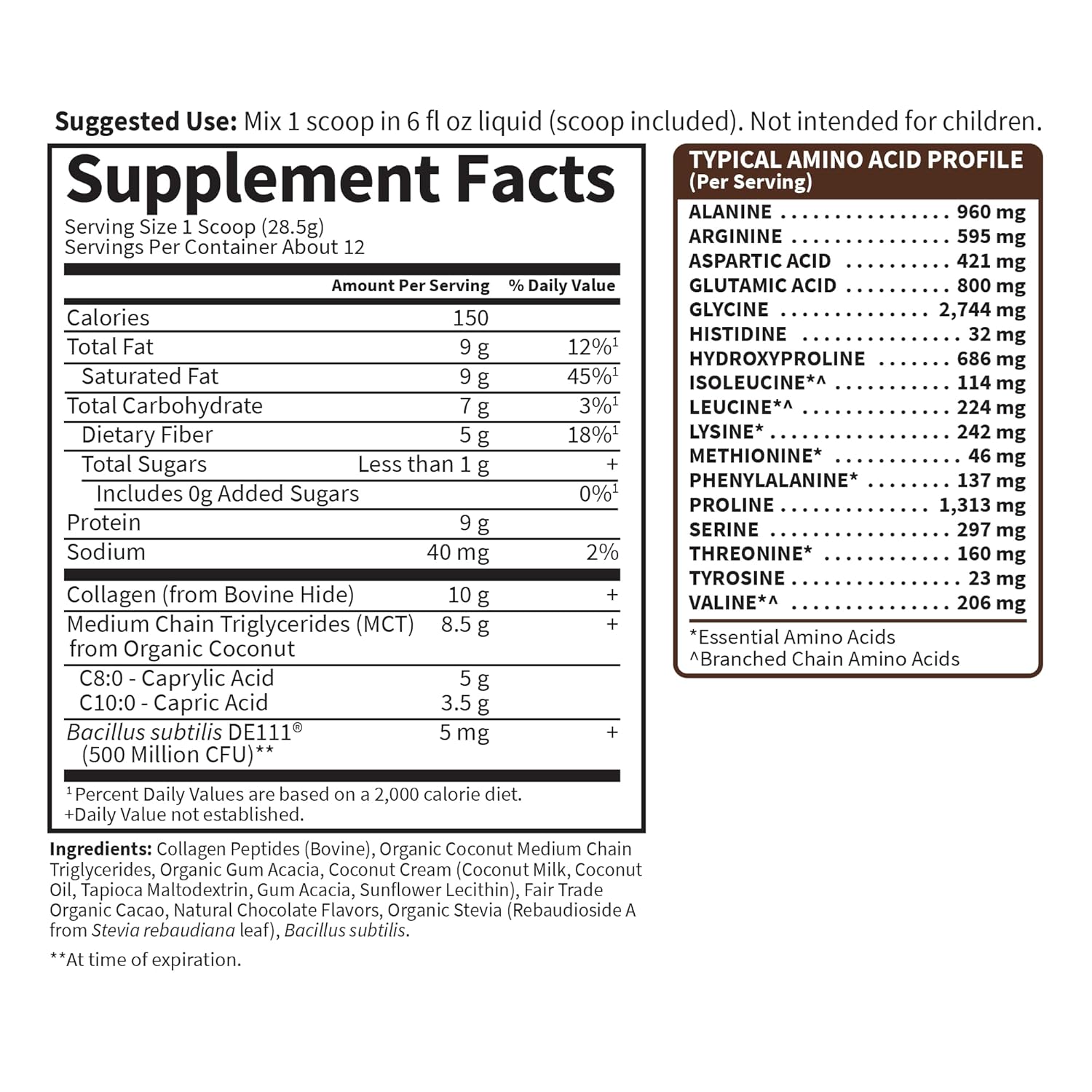 Transform your daily coffee ritual with this nutrient-dense chocolate creamer from Garden of Life. Each scoop delivers 10g of grass-fed collagen peptides (types I and II) to support joint structure and skin elasticity, plus 9g of MCT-derived fats from organic coconut for sustained mental clarity and energy. The addition of Bacillus subtilis probiotics promotes digestive efficiency and microbiome balance. Naturally sweetened with stevia and crafted without gluten, dairy, or artificial additives, this formula aligns seamlessly with Keto and Paleo protocols. Versatile enough for beverages or baking, it combines premium sourcing with functional nutrition in every serving. This item is guaranteed to be fresh for at least 60 days from: 01/02/2026