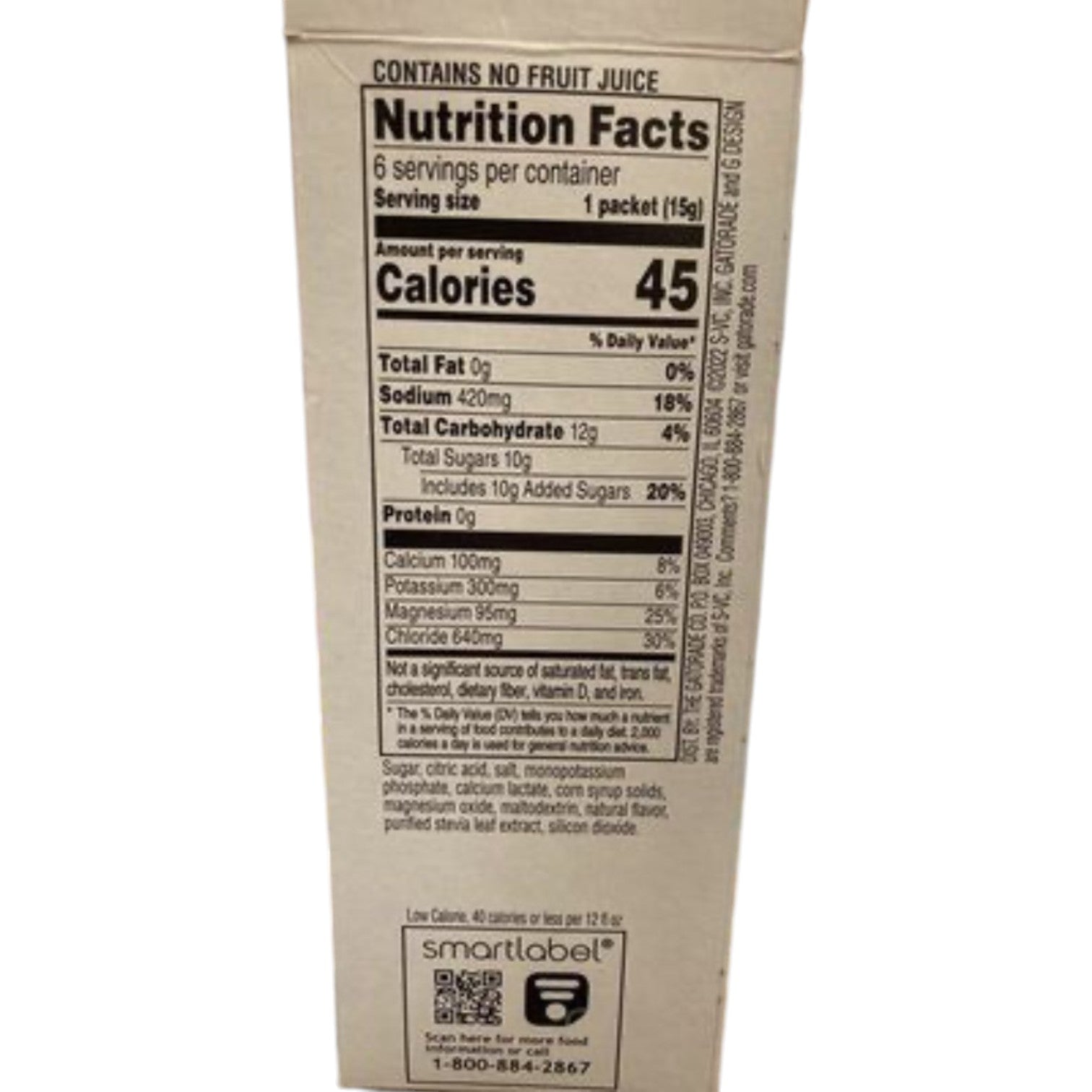 Gatorlyte Rapid Rehydration Powder in Cherry Lime flavor is a scientifically formulated electrolyte drink mix designed to help rapidly replenish fluids and electrolytes lost during intense physical activity, illness, or heat exposure. Each single-serve packet contains a balanced blend of electrolytes, including sodium, potassium, and chloride, in higher concentrations than traditional sports drinks, to support faster rehydration. The product is sugar-free and contains no artificial flavors or sweeteners. The convenient powder form allows for easy mixing with water, providing a portable and effective hydration solution. This package contains 6 individual powder packets.