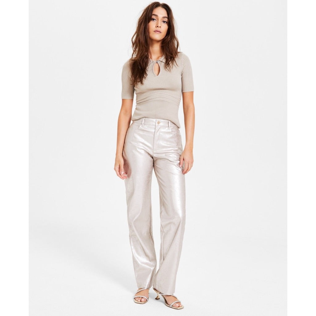 Guess Women's Ambra Metallic Straight-Leg Pants - Metallized Champagne, XSx29