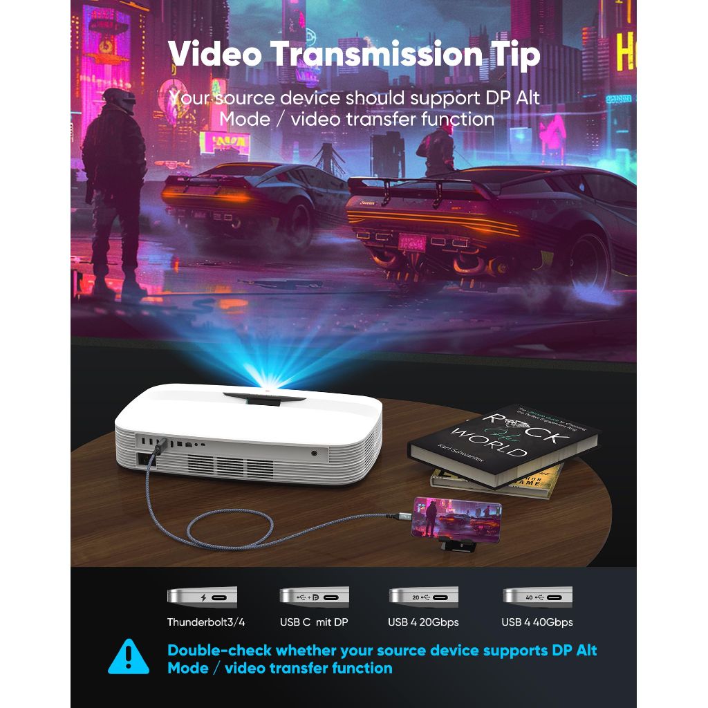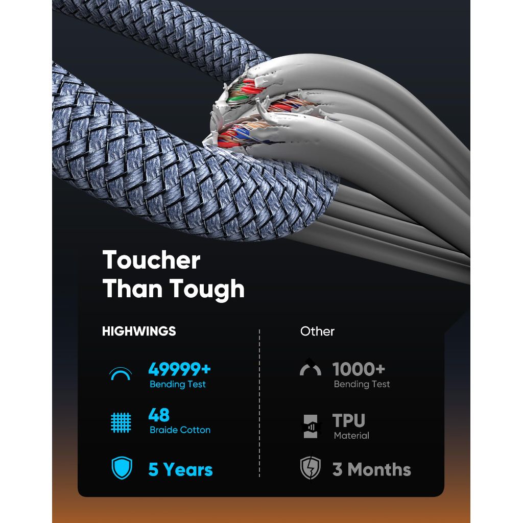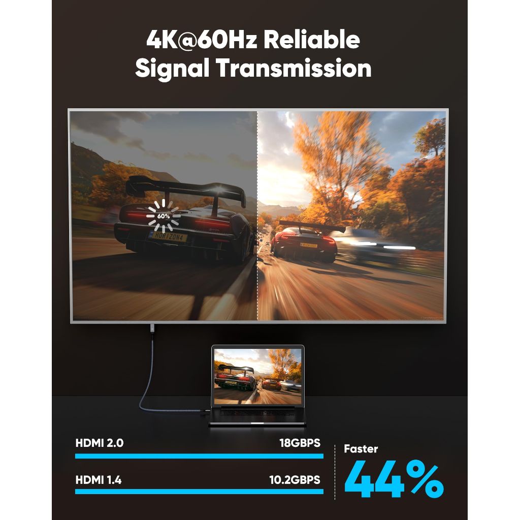 The Highwings USB-C to HDMI Cable is a 6.6-foot (2-meter) cable designed for high-definition video and audio transmission from USB-C source devices to HDMI displays. It supports 4K resolution at 60Hz refresh rates, providing a sharp and smooth visual experience, and is backward compatible with 1080p and 720p resolutions. This cable is engineered for devices with USB-C ports that support DisplayPort Alternate Mode (DP Alt Mode) and is also compatible with Thunderbolt 3 and Thunderbolt 4 ports. It features a unidirectional design, transmitting signal from a USB-C source (like a laptop, tablet, or phone) to an HDMI display (like a monitor, TV, or projector). Key compatible devices include the iPhone 15 Pro and 15 Pro Max, MacBook Pro and MacBook Air with M1 or later chips, iPad Pro (2018 and later), iPad Air (2020-2022), Dell XPS series, Microsoft Surface series, and Samsung Galaxy S20-S23 series. It is not compatible with devices using Lightning ports (iPhone 4-14) and does not support charging or HDMI-to-USB-C transmission. The cable is constructed with 24K gold-plated connectors, a tinned copper core, and multiple layers of shielding to ensure stable signal transmission, reduce interference, and maintain high audio and image quality. Its exterior features a durable braided nylon jacket that has undergone extensive bend testing, a flat design to minimize tangling, and user-friendly grips for easy plugging and unplugging. This is a plug-and-play solution that does not require additional drivers. Note: The maximum achievable resolution and refresh rate depend on the specifications of the connected source device and display. Using intermediaries like docks or hubs may affect performance.