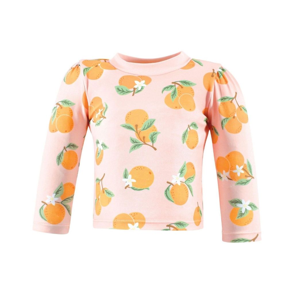 Hudson Baby Baby Girls Hudson Swim Rashguard Set, Dainty Flower Pink - 3-6 Months - Citrus Orange