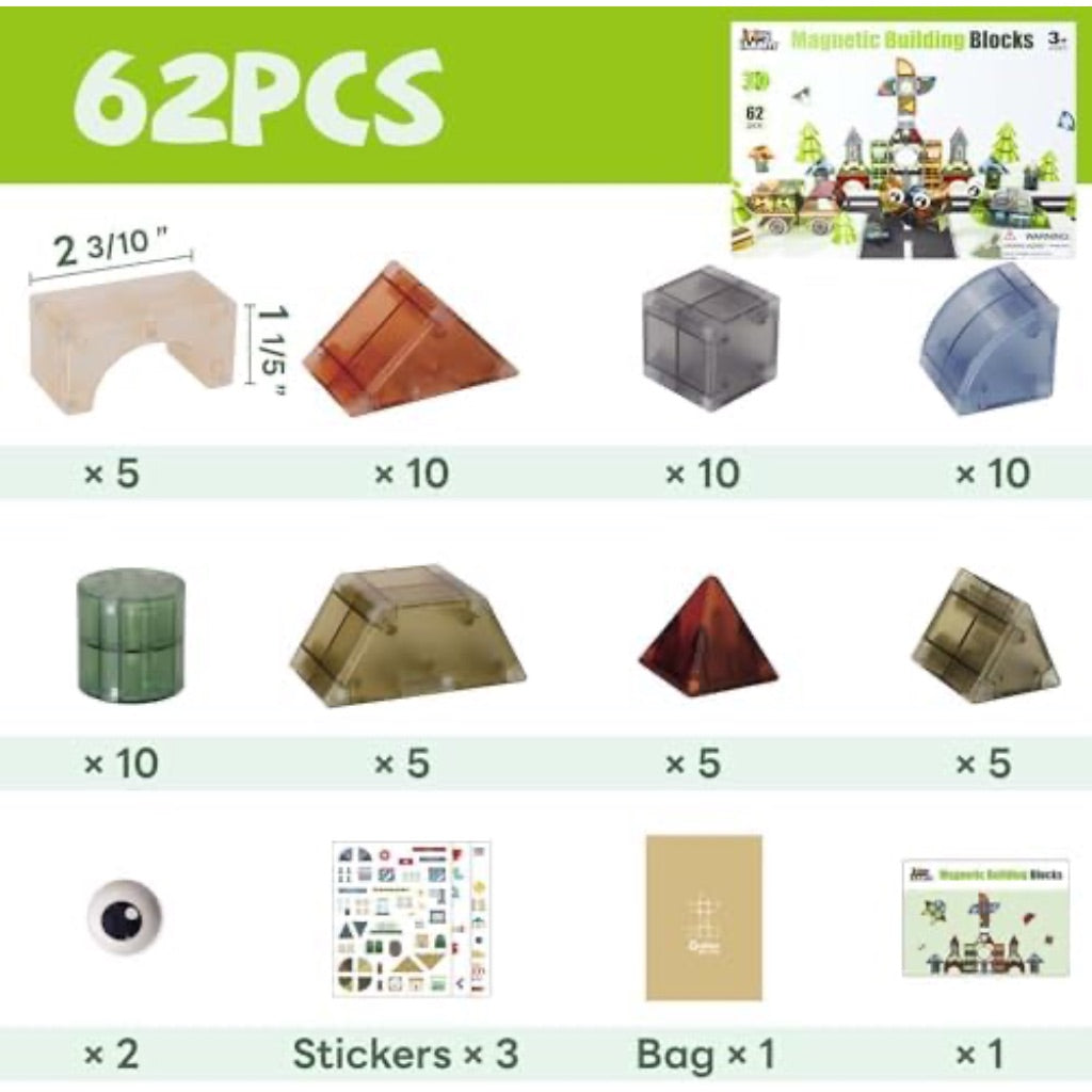 iPlay iLearn Kids Magnetic Building Blocks - 62pcs