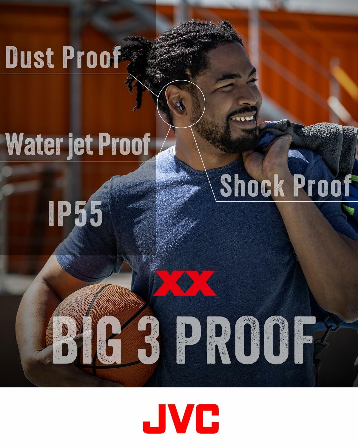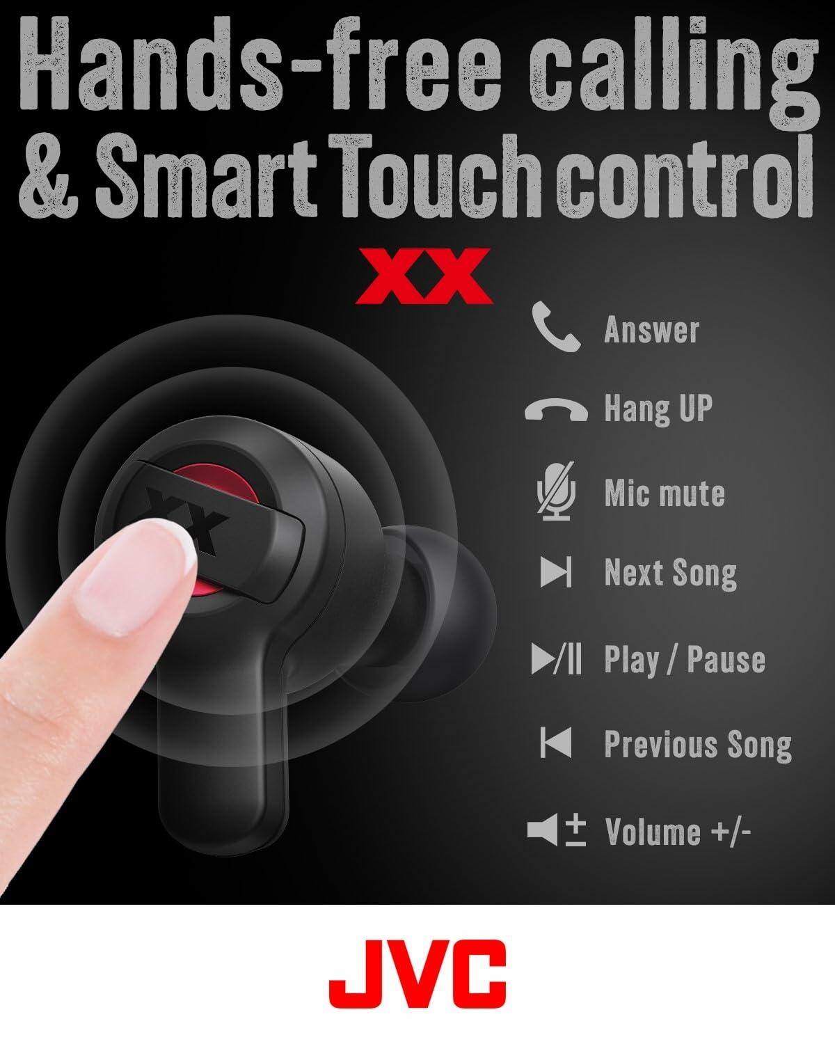 JVC XX True Wireless Earbuds with Deep Bass, 24H Battery, IP55 Waterproof - Black/Red