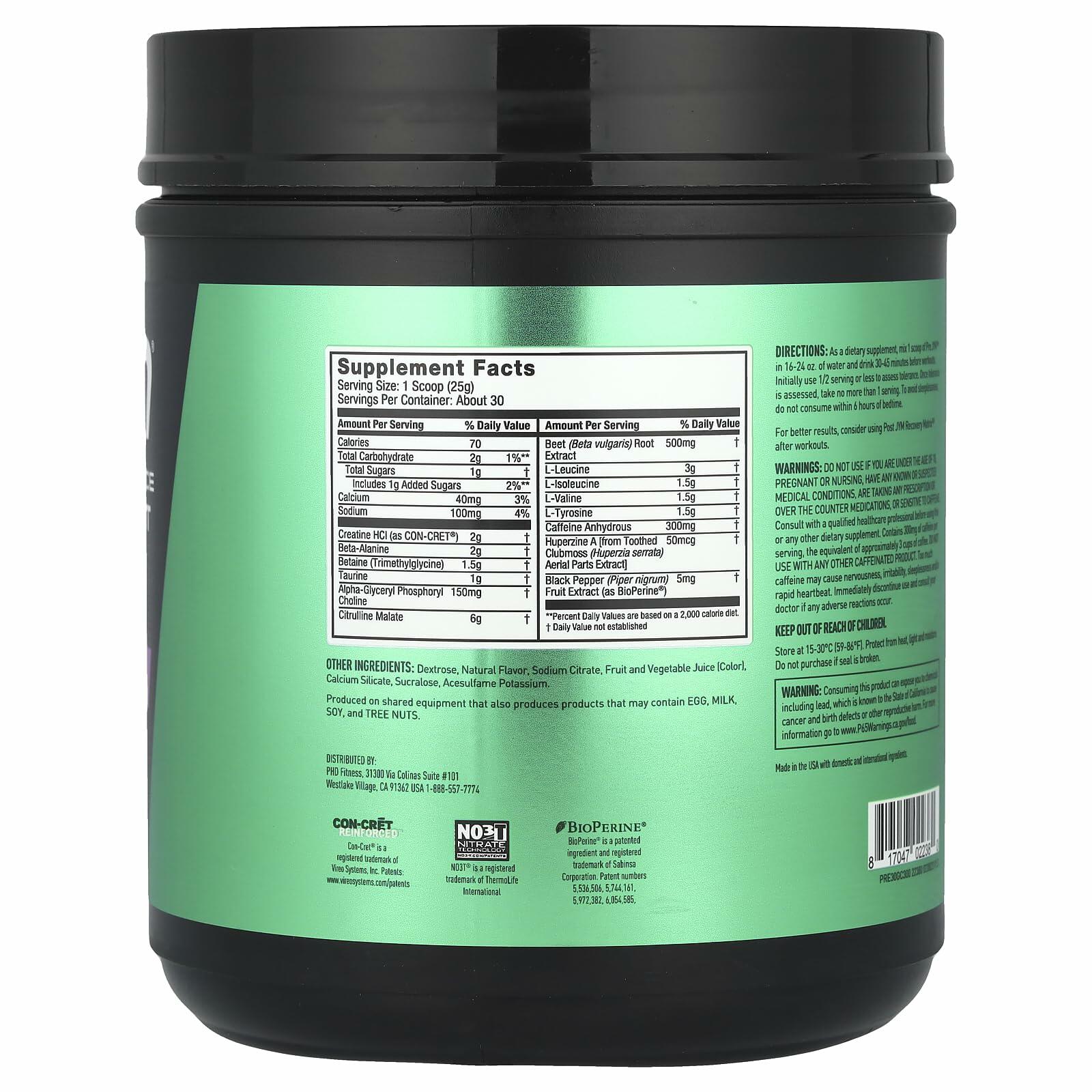 - Quality ingredients - pre JYM pre-workout powder contains the best ingredients to optimize your workout. It has BCAAs and Creatine for muscle growth, Citrulline Malate and caffeine for endurance, plus beta-alanine and Betaine for strength.