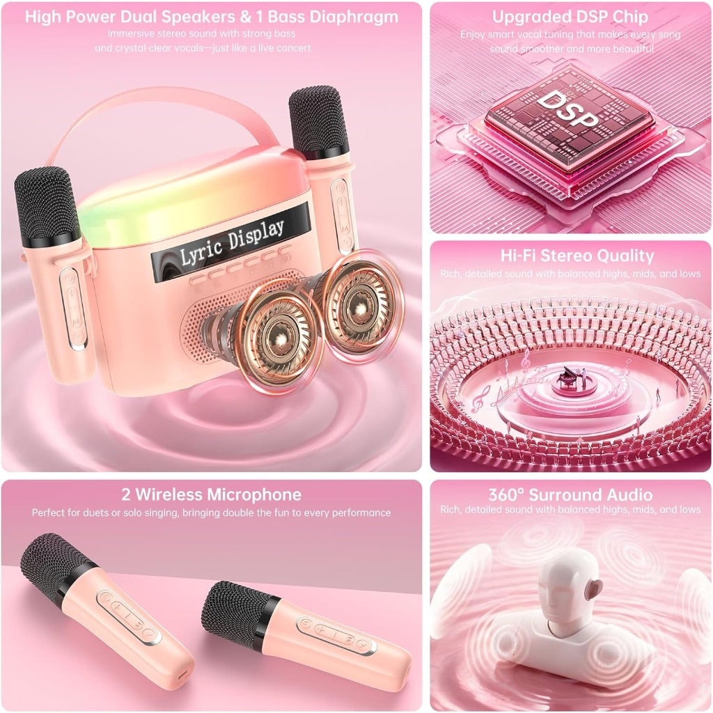 Karaoke Machine with Lyrics Display Screen, Bluetooth - Pink