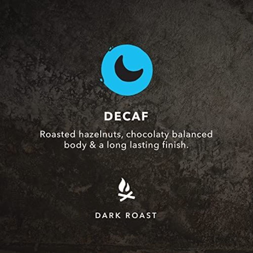 Kicking Horse Coffee Swiss Water Process Decaffeinated is an organic, dark roast whole bean coffee. It is decaffeinated using the Swiss Water Process, a chemical-free method that removes caffeine while preserving the coffee's original flavor compounds. The beans are 100% Arabica, certified organic, and sourced from farms that practice sustainable and socially responsible agriculture. This coffee features tasting notes of roasted hazelnuts and chocolate, with a balanced body and a long-lasting, mellow finish. It is roasted in small batches in the Canadian Rocky Mountains without the use of preservatives, additives, fillers, or artificial flavorings. The recommended grind is medium-fine, making it suitable for brewing methods including French press, drip coffee makers, pour-over, and espresso machines. The product is packaged in a 2.2-pound (approximately 1 kilogram) bag.