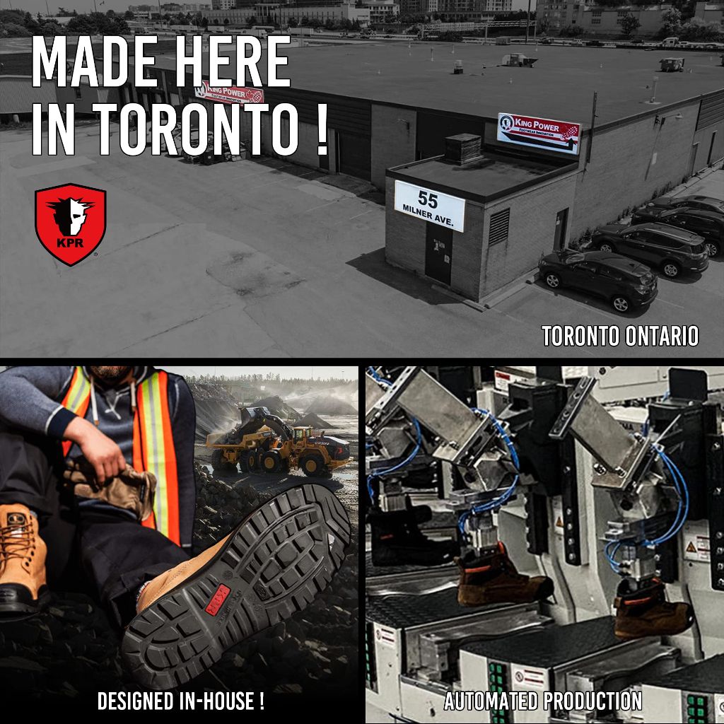 The KPR Steel Toe Work Boots for Men are a high-performance safety boot designed for demanding work environments. They feature an ASTM/CSA-certified steel toe cap for maximum impact and compression protection. The boots incorporate a 3-layer safety system including ESR protection, anti-slip technology, and puncture-resistant soles with a Kevlar midsole to guard against sharp objects. Constructed using DESMA footwear technology, the seamless one-piece design prevents delamination and blocks liquid penetration, making them suitable for wet, oily, or harsh conditions. The upper is crafted from durable, waterproof leather, and the boots are insulated with 3M Thinsulate to retain warmth in cold weather without sacrificing mobility. The tall ankle-length design provides ankle support, while the wide rubber outsole offers stability and slip resistance. The boots include excellent arch support and feature removable insoles to accommodate custom orthotics. They are suitable for construction, contracting, landscaping, manual labor, and various industrial applications.