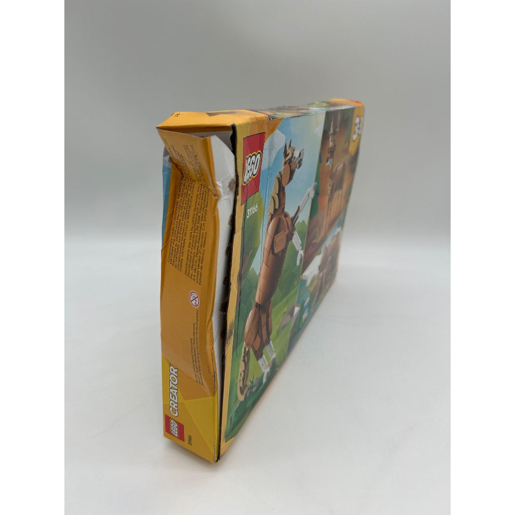 Brand new in a sealed, damaged box. Brighten up your little animal lover's day with the LEGO Creator three-in-one beautiful horse set. Start by building a detailed horse with movable joints, then transform it into a powerful bear or a graceful deer—all using the same bricks. Perfect for ages nine and up, this 685-piece set keeps you and your little one engaged for hours. | LEGO Creator 3-in-1: Beautiful Horse - 685 Pieces (31166). FEATURES