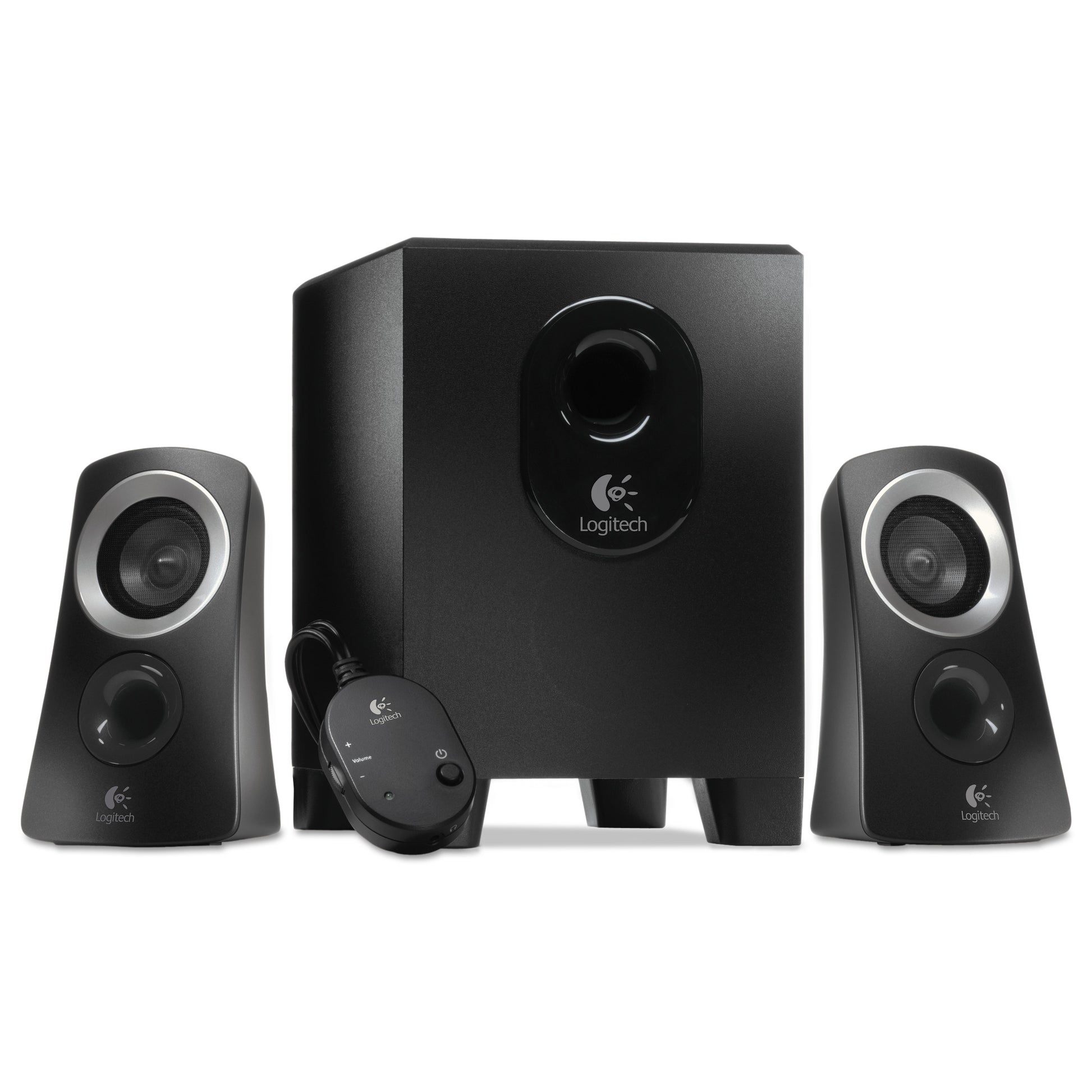 The Logitech Z313 2.1 Speaker System delivers rich, balanced sound with 25 watts (RMS) of power, making it ideal for enhancing your computer audio, gaming, or music listening experience. This system includes two satellite speakers and a subwoofer that work together to produce clear highs and deep bass. The convenient control pod allows for easy access to volume control and a headphone jack for private listening. With simple setup and compact design, the Z313 fits perfectly on any desk or in small spaces. The system features RCA inputs for compatibility with various devices, and its black finish offers a sleek look that complements most computer setups.