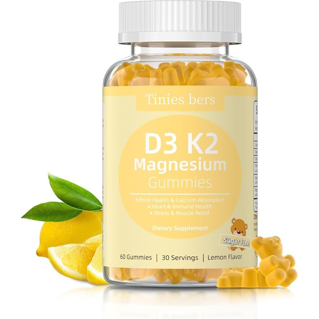 Magnesium Glycinate Gummies 500mg, D3 K2 Magnesium Gummies for Adults Kids, Highly Absorbent Support Calcium & Bone, Stress & Muscle Relief, Immune, Non-GMO, Gluten-Free, Vegan, Sugar Free, Lemon, 60