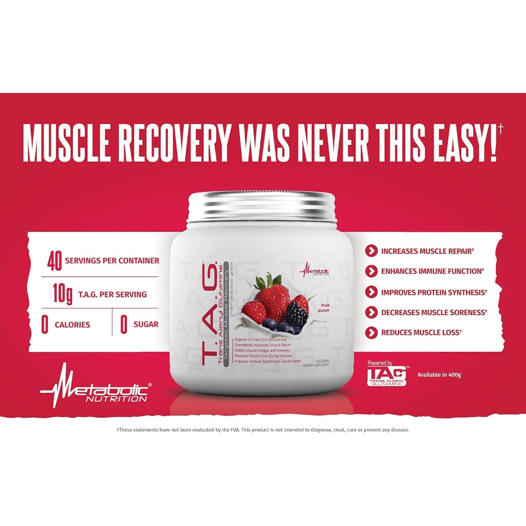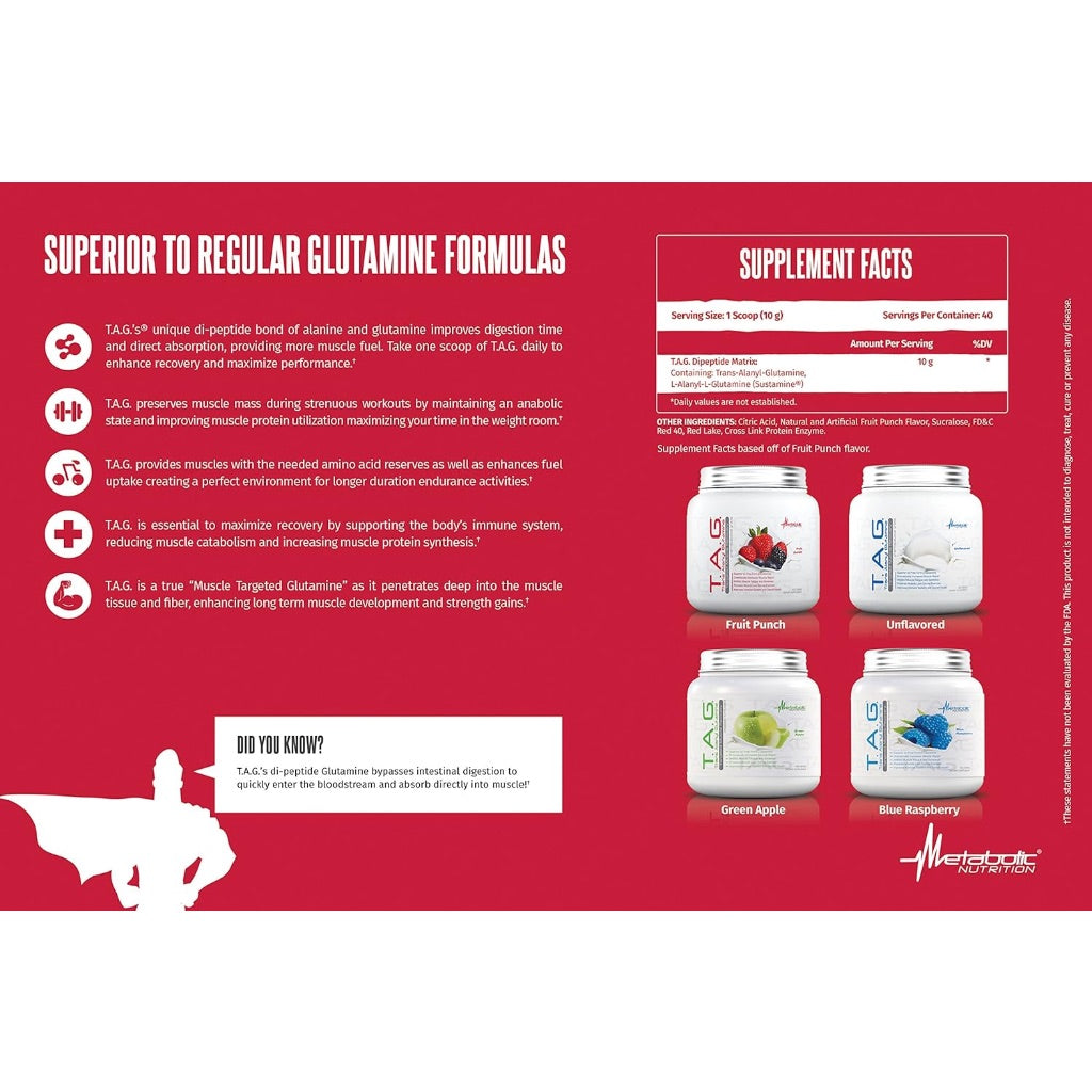Metabolic Nutrition TAG Trans Alanyl Glutamine, 100% L-Glutamine Peptide Powder - Unflavored, 40 Svgs.