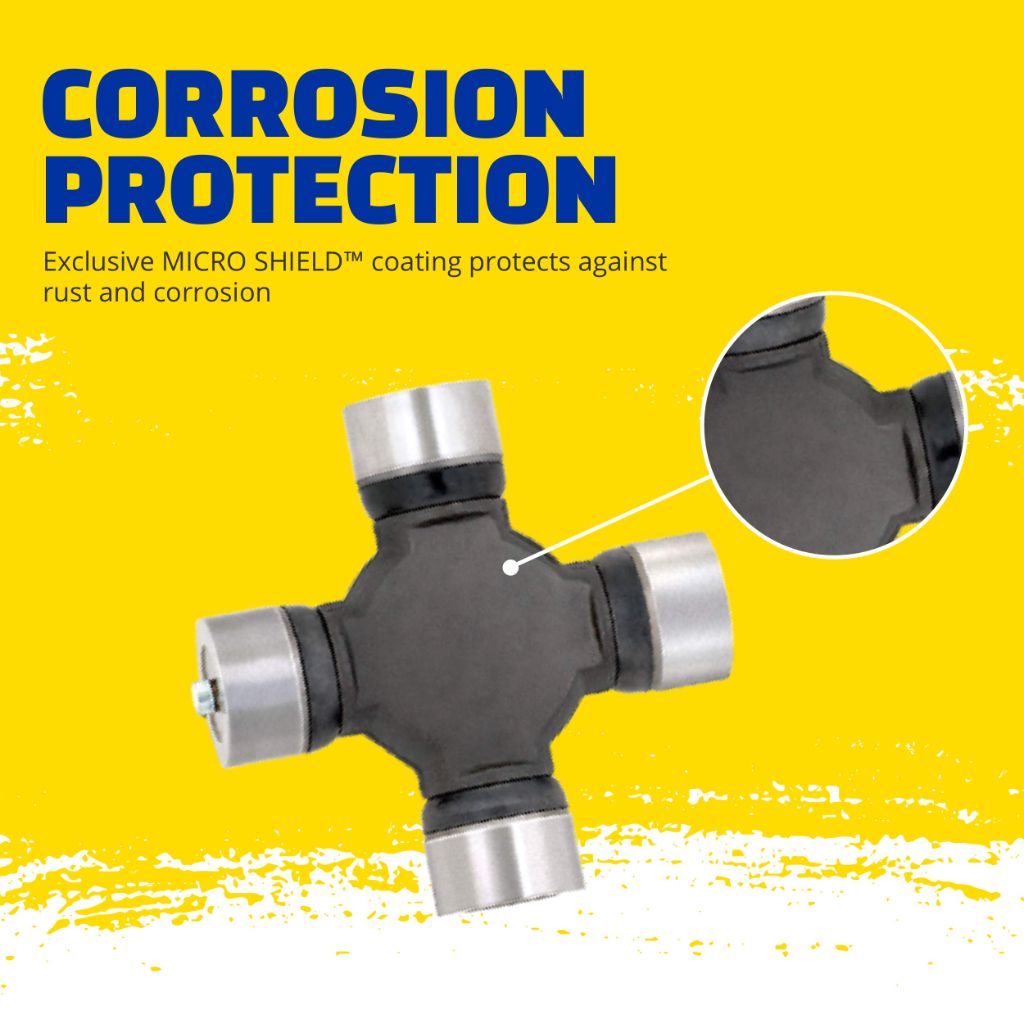 The MOOG 271 is a Super Strength universal joint designed for heavy-duty applications, particularly in trucks requiring higher torque and horsepower capabilities. This non-greaseable universal joint features a rugged construction with cold-forged, case-hardened, and precision-ground bearing cups for enhanced durability. The steel cross is forged and undergoes carburized heat processing to provide superior strength and longevity. It incorporates nitrile seals that effectively retain grease while protecting against under-vehicle debris and contamination. The joint is treated with MOOG's exclusive MICRO SHIELD coating, which offers protection against rust and corrosion. This universal joint is engineered for reliable performance and is compatible with various Dodge Ram 2500, 3500, and W-Series trucks from specific model years, as well as certain Ford F-250 Super Duty applications. It represents MOOG's commitment to problem-solving innovations designed for straightforward installation and long-term dependability in demanding driving conditions.