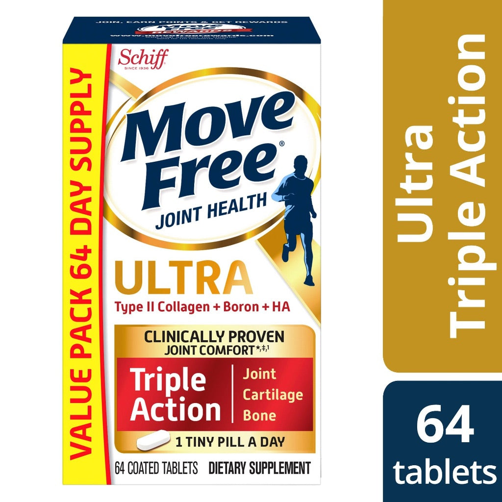 Move Free Ultra Triple Action Joint Support w/Collagen, Boron, & HA - 64 Tablets