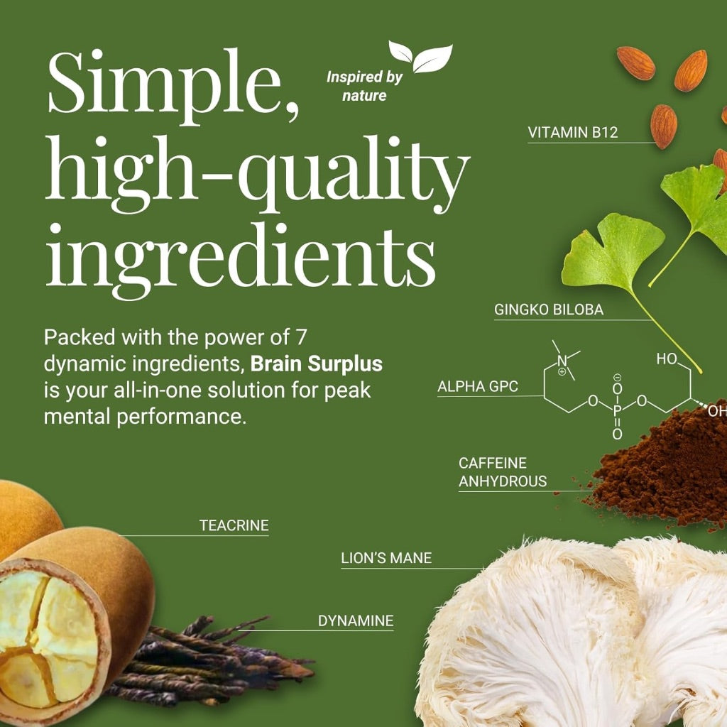 This nootropic supplement is formulated to support cognitive function, including memory, focus, and energy levels. The product contains a blend of ingredients such as Lion's Mane mushroom, known for its potential neuroprotective properties and support for brain health; Ginkgo Biloba, traditionally used to enhance blood circulation and cognitive performance; and Alpha GPC (Alpha-Glycerophosphocholine), a choline source that may support memory and learning. It is also fortified with Vitamin B12, which plays a role in energy production and nervous system function. The supplement is manufactured to be non-GMO, vegan, and gluten-free, catering to specific dietary preferences and restrictions.