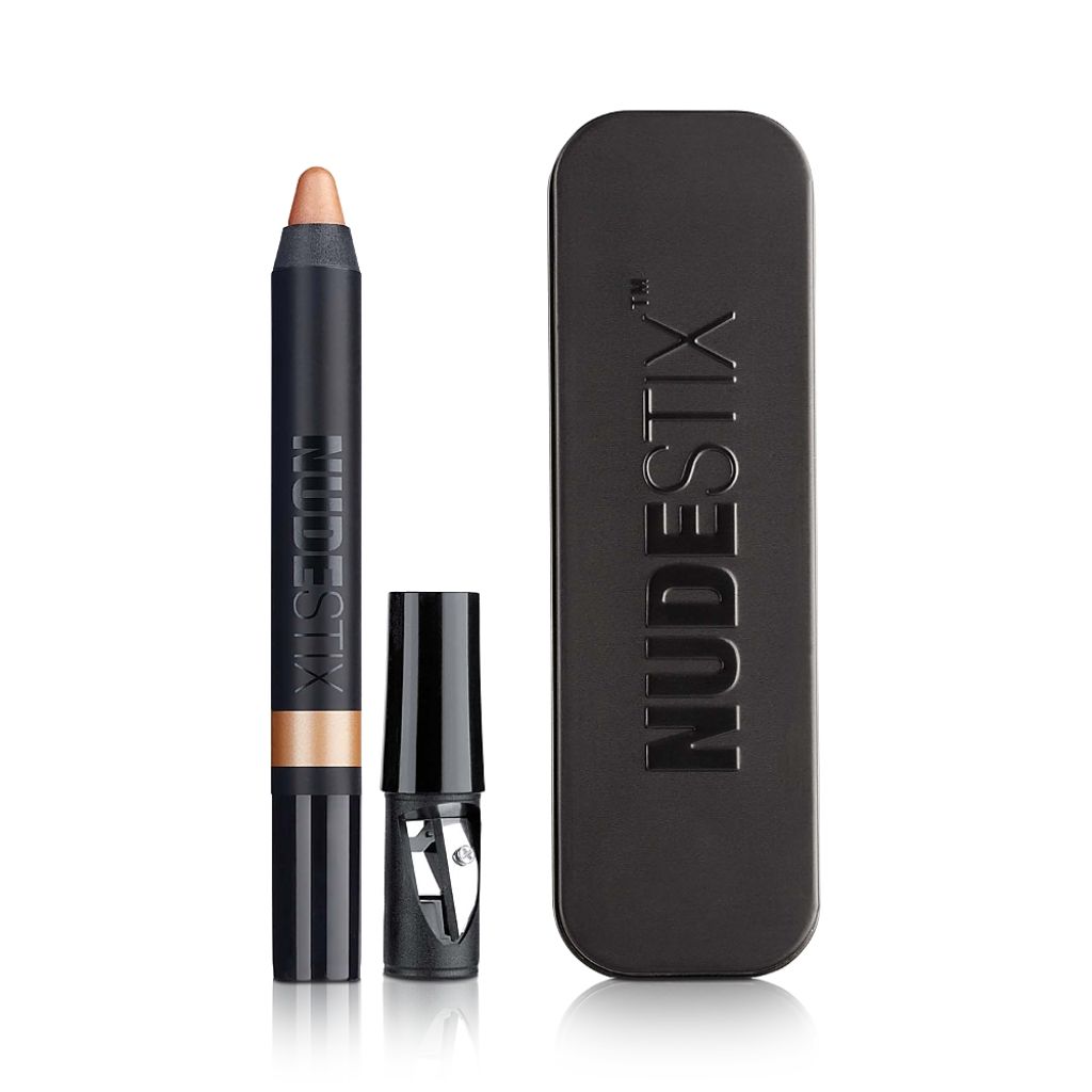 The NUDESTIX Magnetic Luminous Waterproof Eye Color in the shade Nudity is a multi-purpose, 4-in-1 makeup pencil designed for effortless eye makeup application. It functions as an eyeshadow, eyelid primer, eyeliner, and cream highlighter stick. The formula is infused with hydrating, skincare-like ingredients to provide intense, long-lasting color that wears for up to 11 hours with a waterproof, luminous finish. The pencil features a magnetic cap and comes in a black tin that includes a built-in mirror and a pencil sharpener for convenience. This product is vegan, gluten-free, and cruelty-free. The shade 'Nudity' is described as a neutral nude rose.