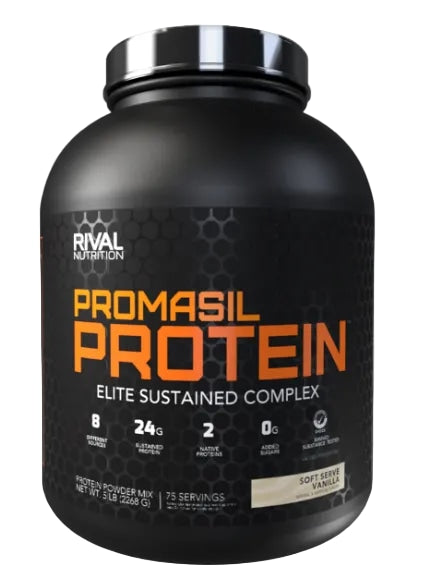 Promasil Soft Serve Vanilla is a premium multi-source protein powder designed for versatile use throughout the day. It features an elite 11-source protein blend that includes Whey Protein Isolate, Whey Protein Concentrate, Native Micellar Casein, Native Whey Protein Isolate, Egg White Protein, Whey Protein Hydrolysate, Micellar Casein, and Goat Milk Protein. This combination provides a broad-spectrum amino acid profile with fast, intermediate, and slower-digesting sources to support muscle recovery and growth. Each serving delivers 24 grams of full-spectrum protein and over 5 grams of BCAAs (branched-chain amino acids: leucine, isoleucine, and valine). The formula is low in fat and sugar. The product is rigorously tested for over 250 banned substances by LGC, an accredited independent anti-doping laboratory, making it safe for competitive athletes. It comes in a 5-pound (approximately 2.27 kg) container with vanilla soft serve flavor. The product dimensions are 9 x 9 x 11 inches. This item is guaranteed to be fresh for at least 60 days from: 01/21/2026 FEATURES
