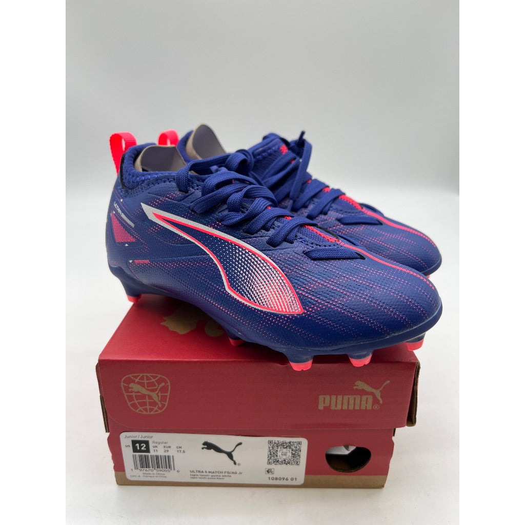 PUMA Kids Ultra Match Firm Ground/All Ground Soccer Cleats, Size 12 Little Kid, Lapis Lazuli/PUMA White/Sunset Glow