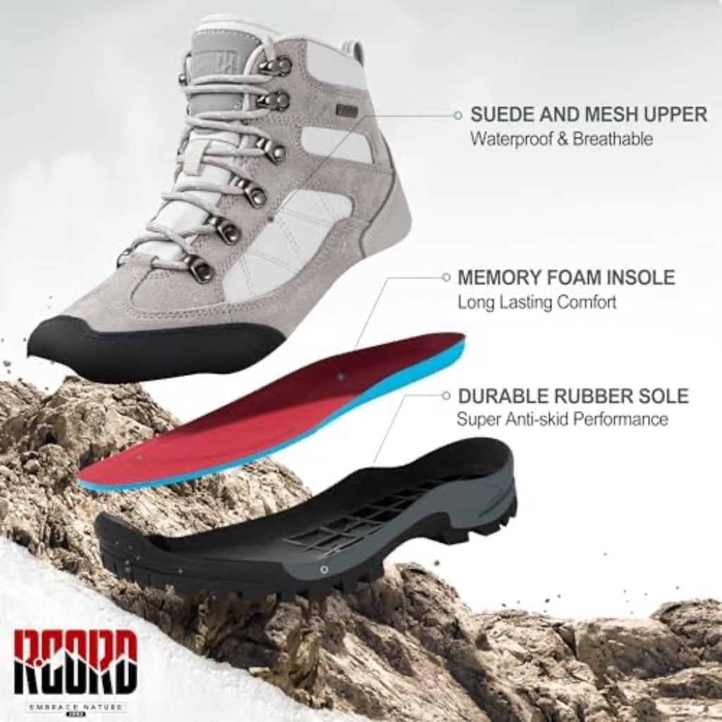 R CORD Women's Waterproof Hiking Boots, Light Gray, Size 8.5
