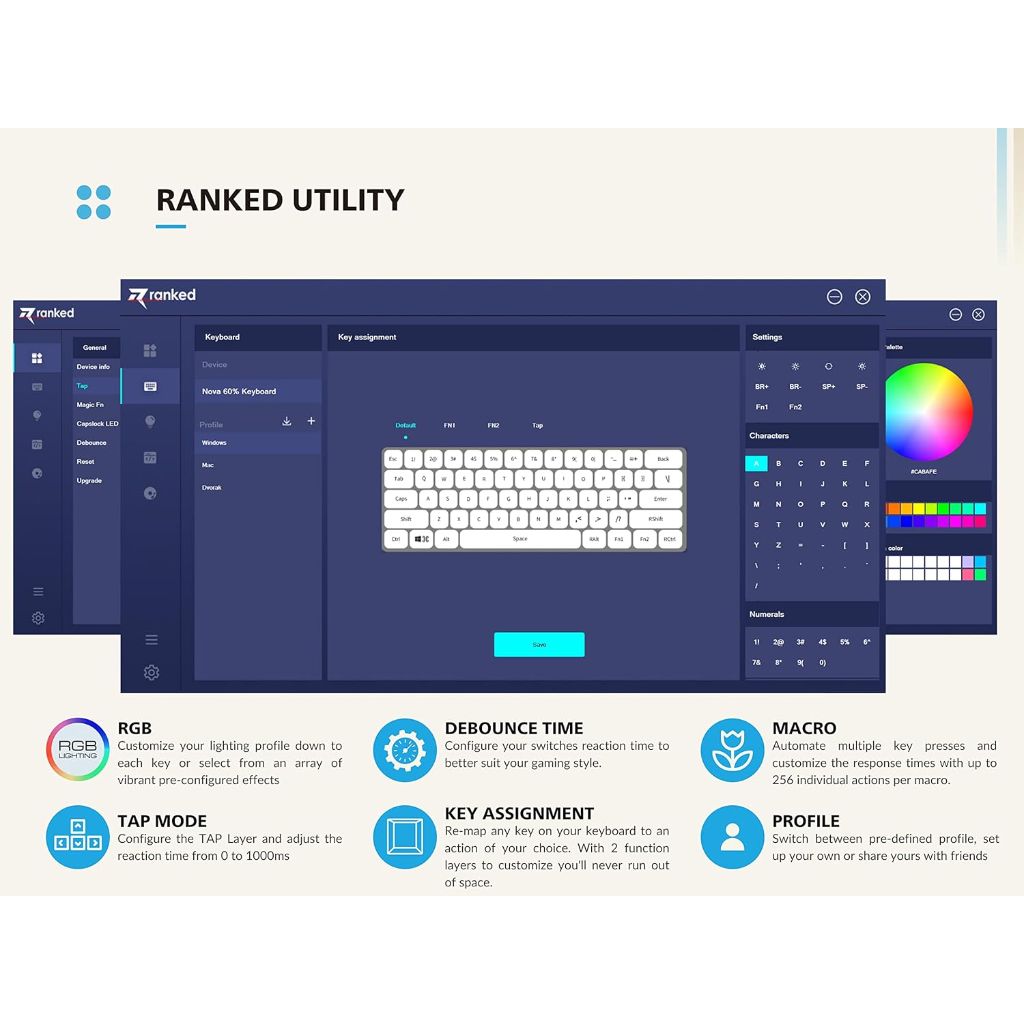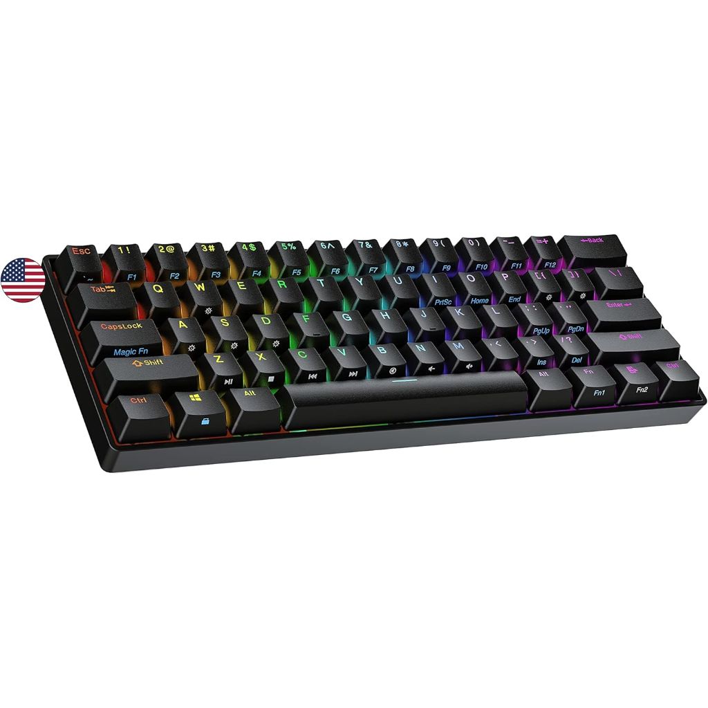 Ranked S60 Supernova 60% Form Factor Hot Swappable Mechanical Gaming Keyboard, 61 Keys Multi Color RGB LED Backlit for PC/Mac Gamer (Black, Gateron Optical Blue)