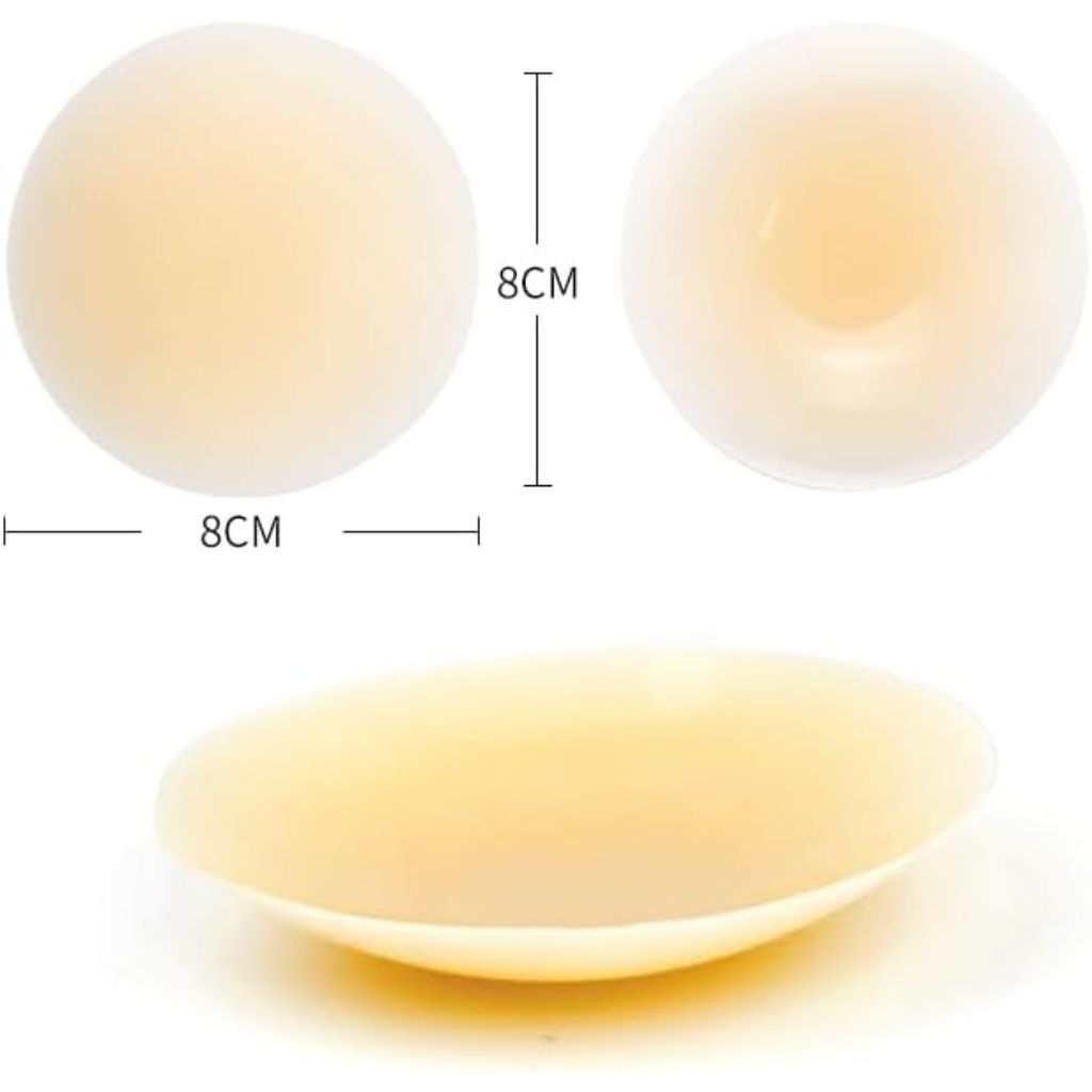 BoldBelle Reusable Silicone Nipple Covers are a discreet undergarment accessory designed to provide coverage and support without traditional bras. This set includes two pairs of adhesive pasties in a beige shade to blend with various skin tones. The covers are made from soft, skin-friendly silicone that is waterproof, hypoallergenic, and designed for all-day comfort without causing irritation. Their ultra-thin, seamless construction creates a smooth, natural look under clothing, making them suitable for backless, strapless, or deep V-neck outfits. The adhesive is strong enough for secure wear yet gentle on skin and allows for multiple uses with proper care. The product includes a compact, durable travel case for convenient storage and portability.