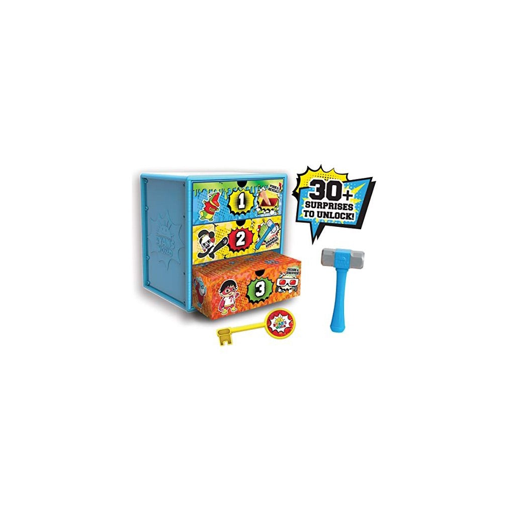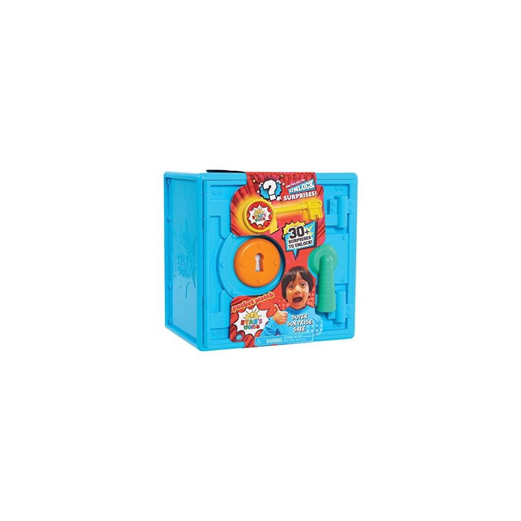 The Ryan's World Super Safe is a children's electronic security safe designed for storing and protecting kids' valuables and treasures. This durable plastic safe features a digital keypad with customizable security code functionality, allowing children to create and remember their own personal access code. The safe includes engaging electronic sound effects and LED lighting features that enhance the interactive play experience. With its child-friendly design and Ryan's World branding, it serves as both a functional security item and an educational toy that teaches responsibility, organization skills, and basic security concepts. The product requires batteries for operation and features dimensions suitable for tabletop use in children's rooms or play areas. It provides secure storage for small collectibles, personal items, and other treasures while encouraging imaginative play and ownership awareness.