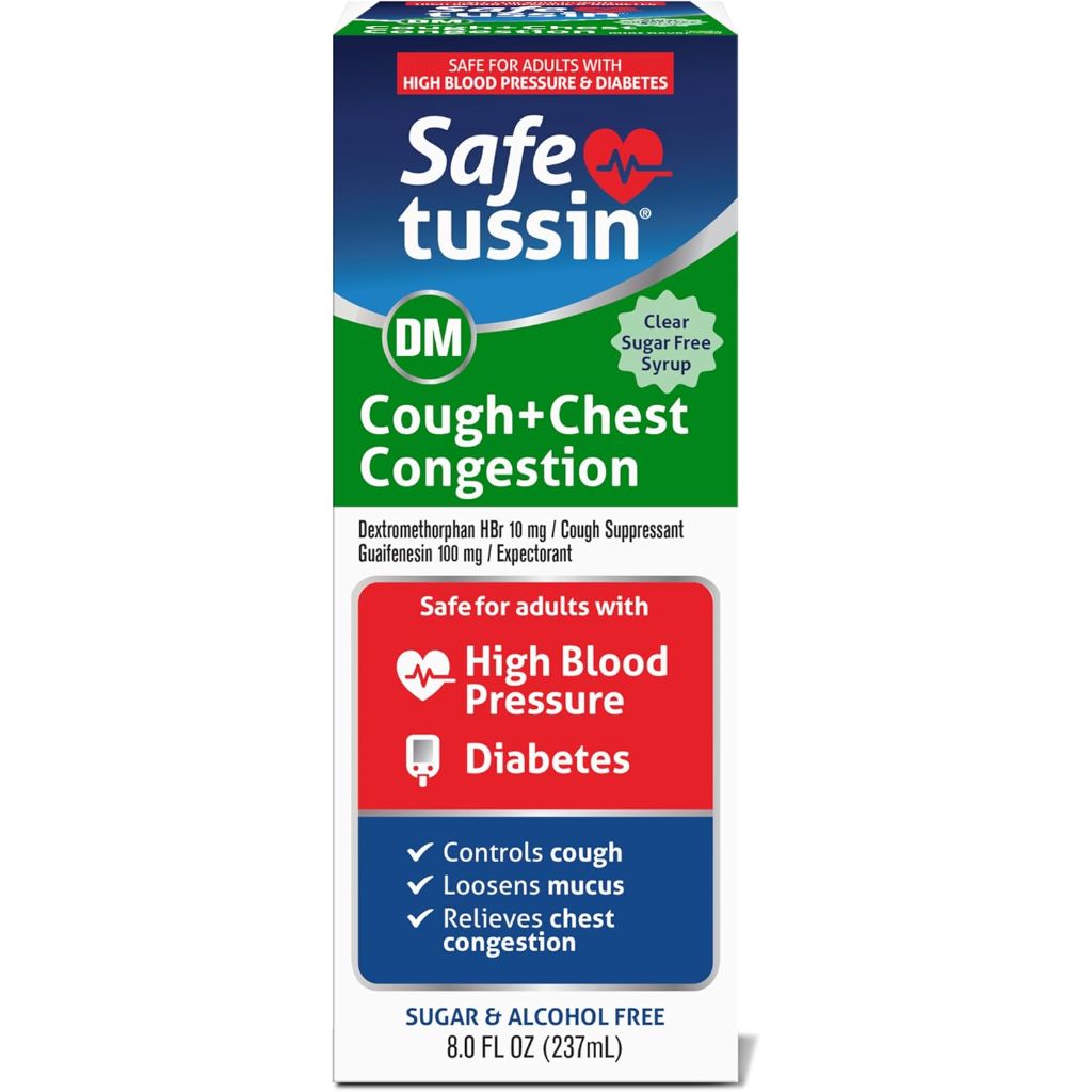 Safetussin DM Cough & Chest Congestion, 8 oz, Expectorant Mucus Relief, Cough Relief Syrup, Safe for Adults with High Blood Pressure & Diabetes