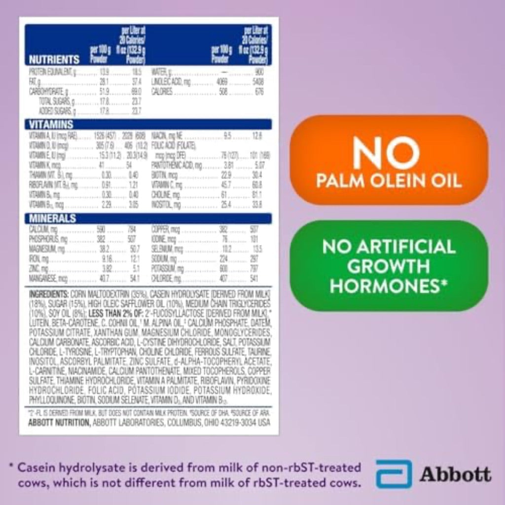 TODDLER DRINK: Similac Alimentum Toddler Drink with 2'-FL HMO helps support your toddler’s diet and has no artificial growth hormones* or palm olein oil. For ages 12-36 months.
