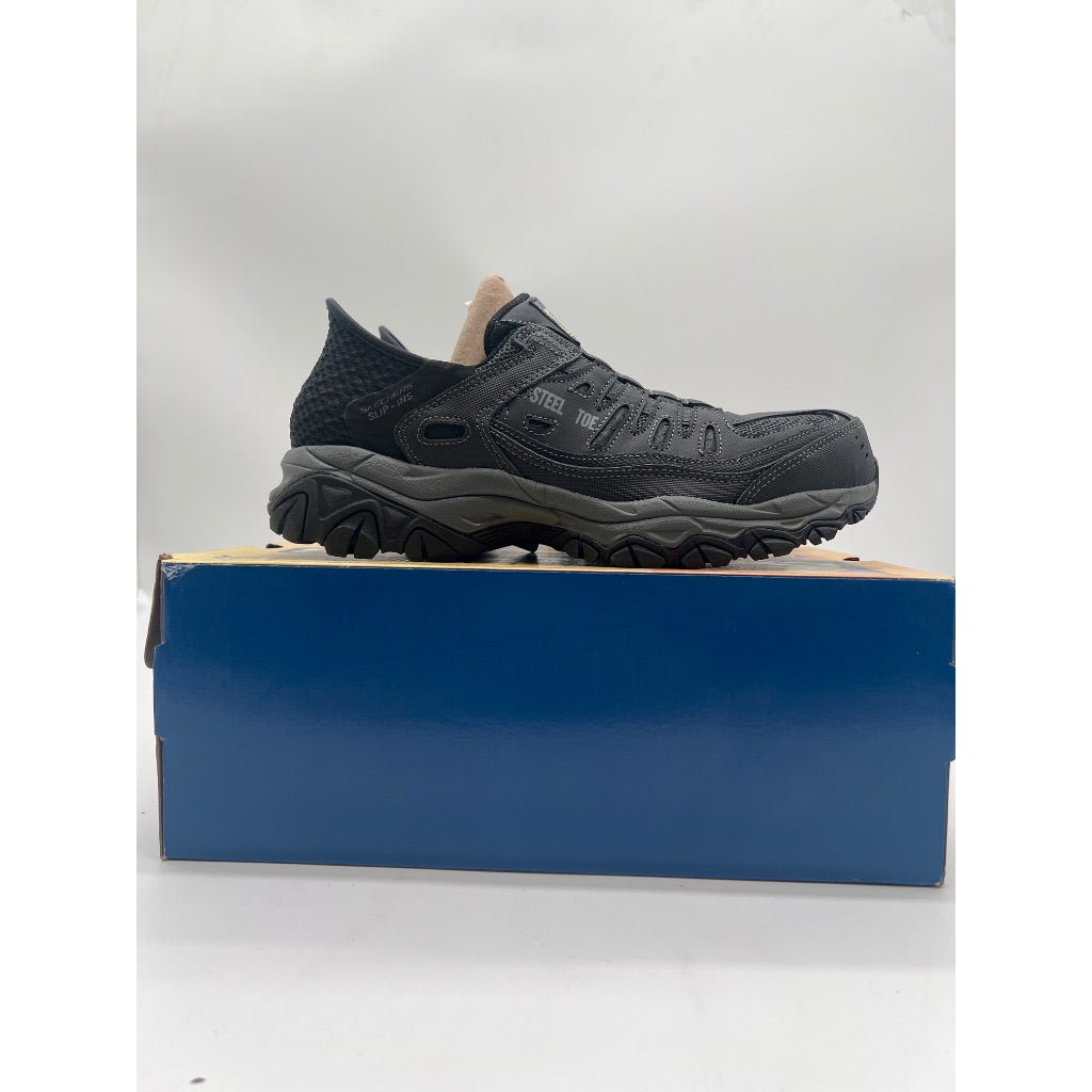 Steel toe meets ASTM F2413 impact and compression standards Skechers Hands Free Slip-ins molded heel panel for an easy fit