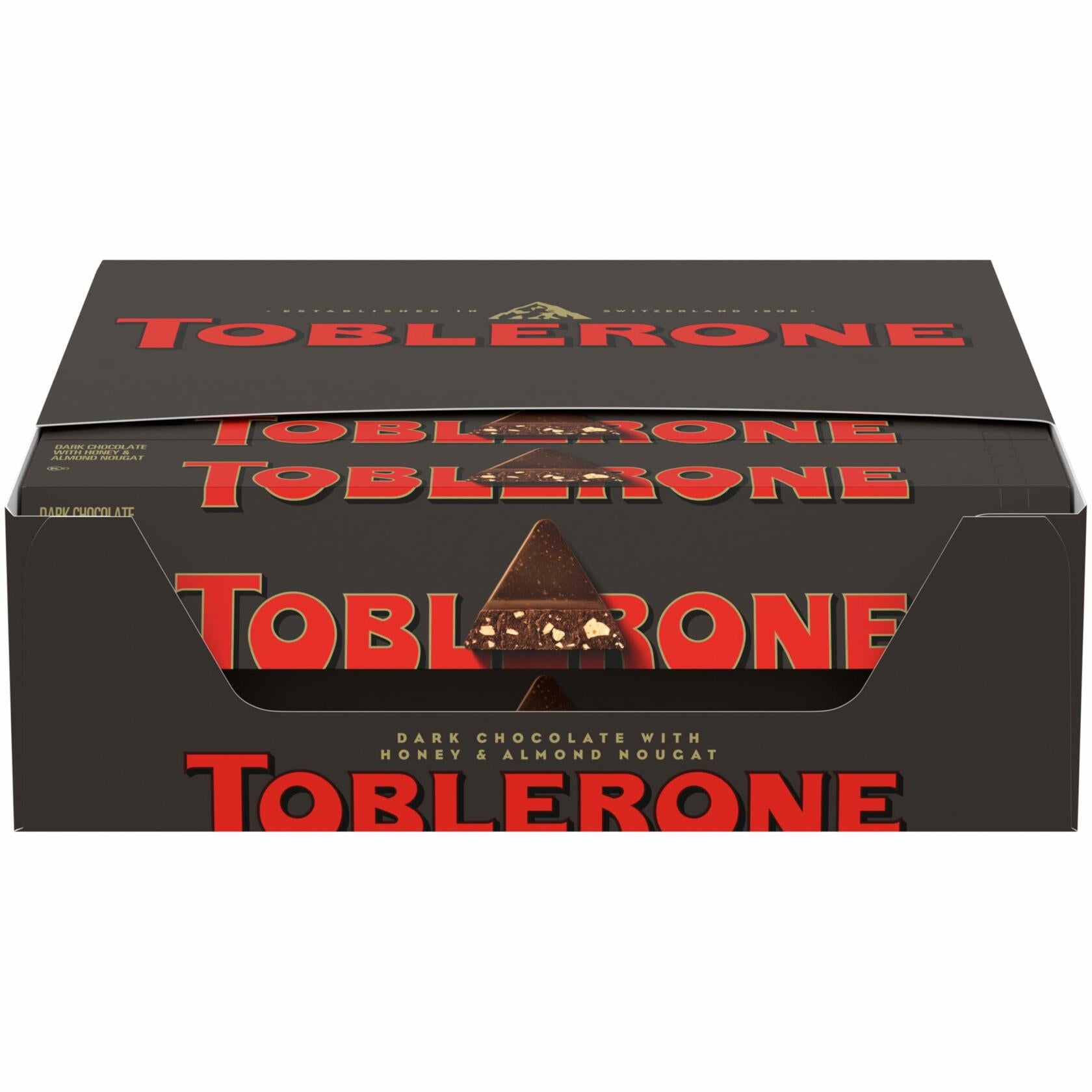- Twenty 3.52 oz TOBLERONE Dark Chocolate Bars with Honey and Almond Nougat (packaging may vary)